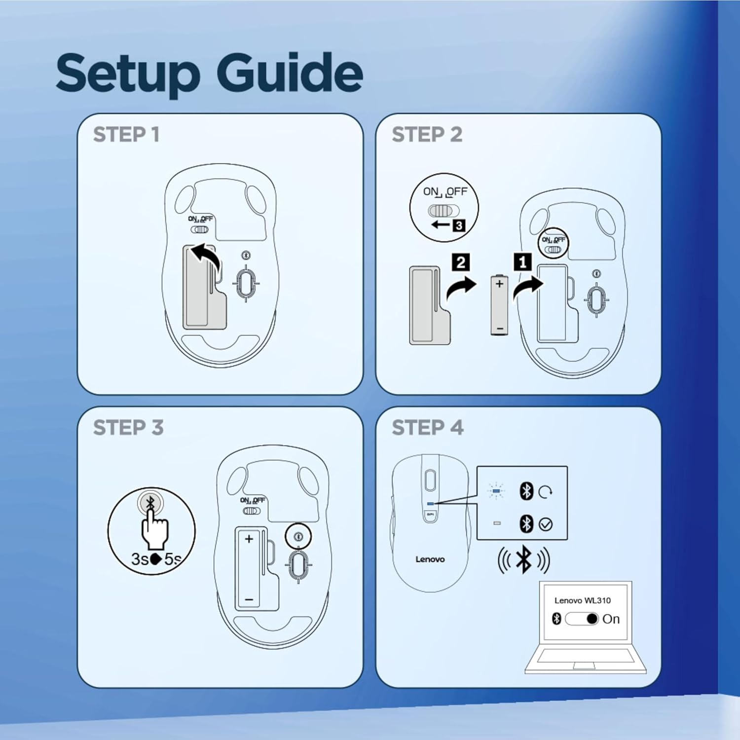 - Ergonomic Wireless Mouse: The Lenovo WL310 Bluetooth Silent Mouse fits perfectly in your hand, reducing wrist strain and offering comfort for extended use on laptops or desktops