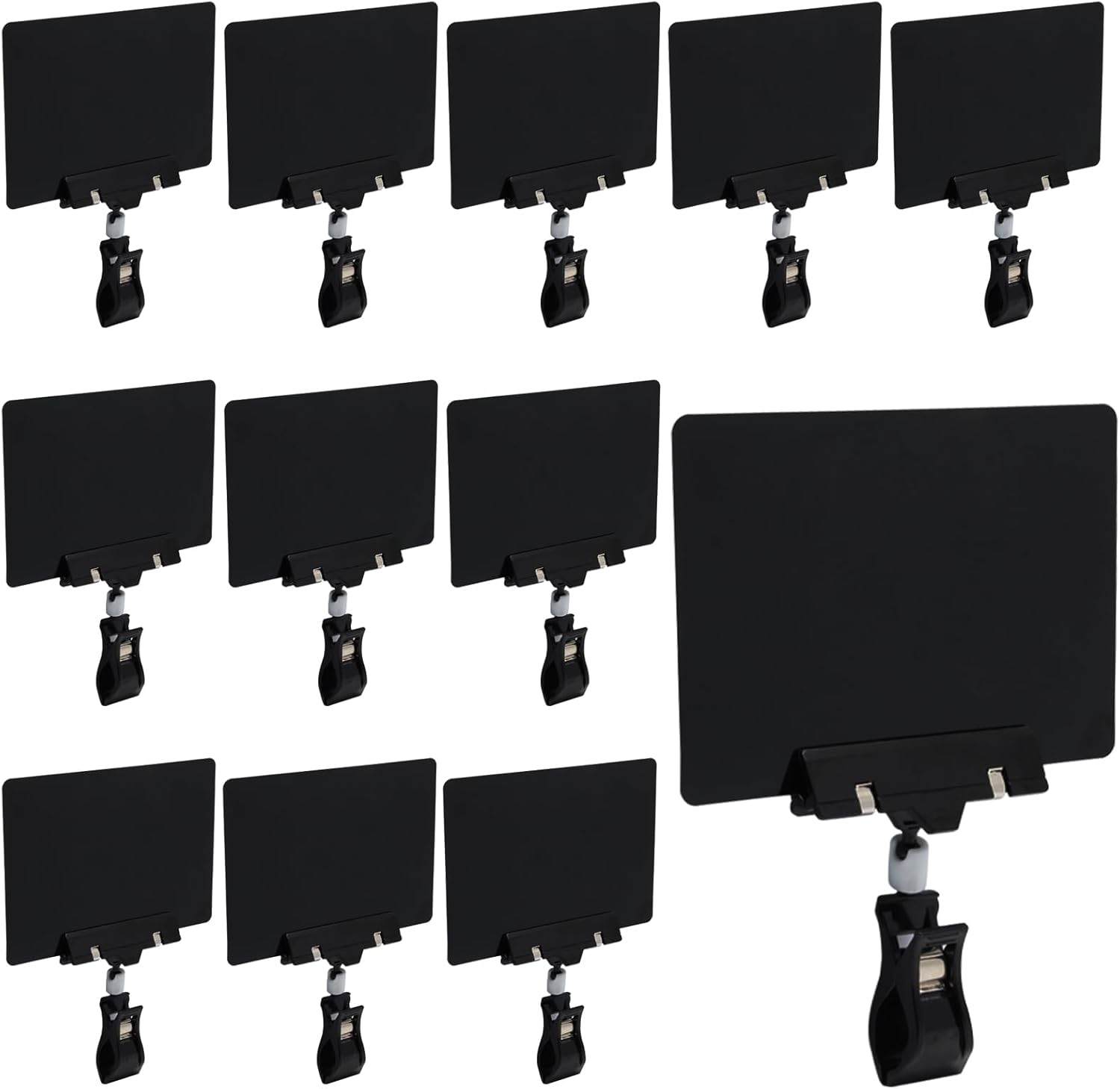 Biaungdo 12 Pcs Plastic Chalkboard Sign with Rotating Clip, Erasable Blackboard Price Tags Double Sided Waterproof Blackboard Clips Display Clip Holder for Shelves,Store,Business, Supermarket(Black)