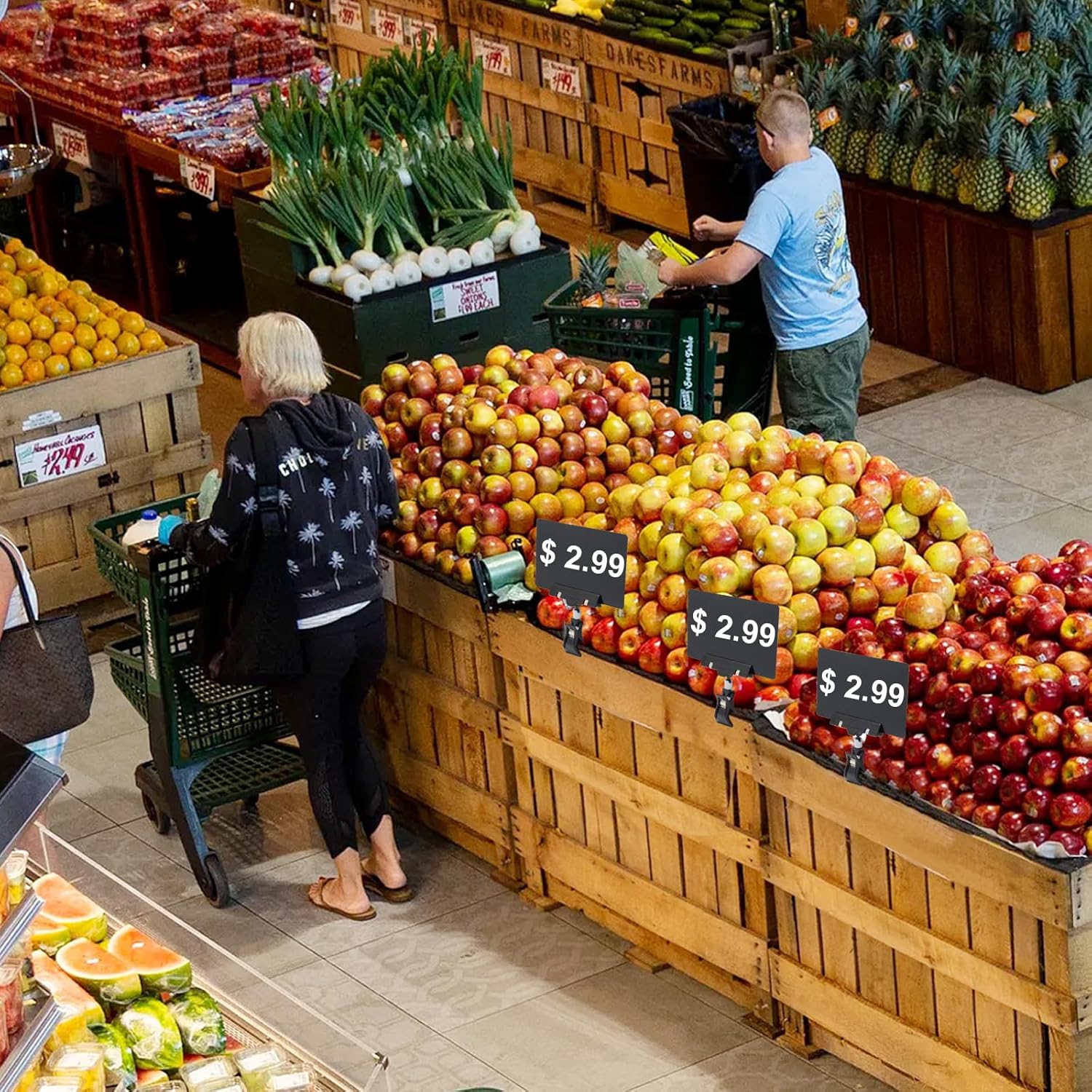 - Wide Application: The rotatable clip sign stand is suitable for price and product sign display in supermarkets, fruit stands, clothing stores, etc. It can be used for advertising displays and exhibitions.