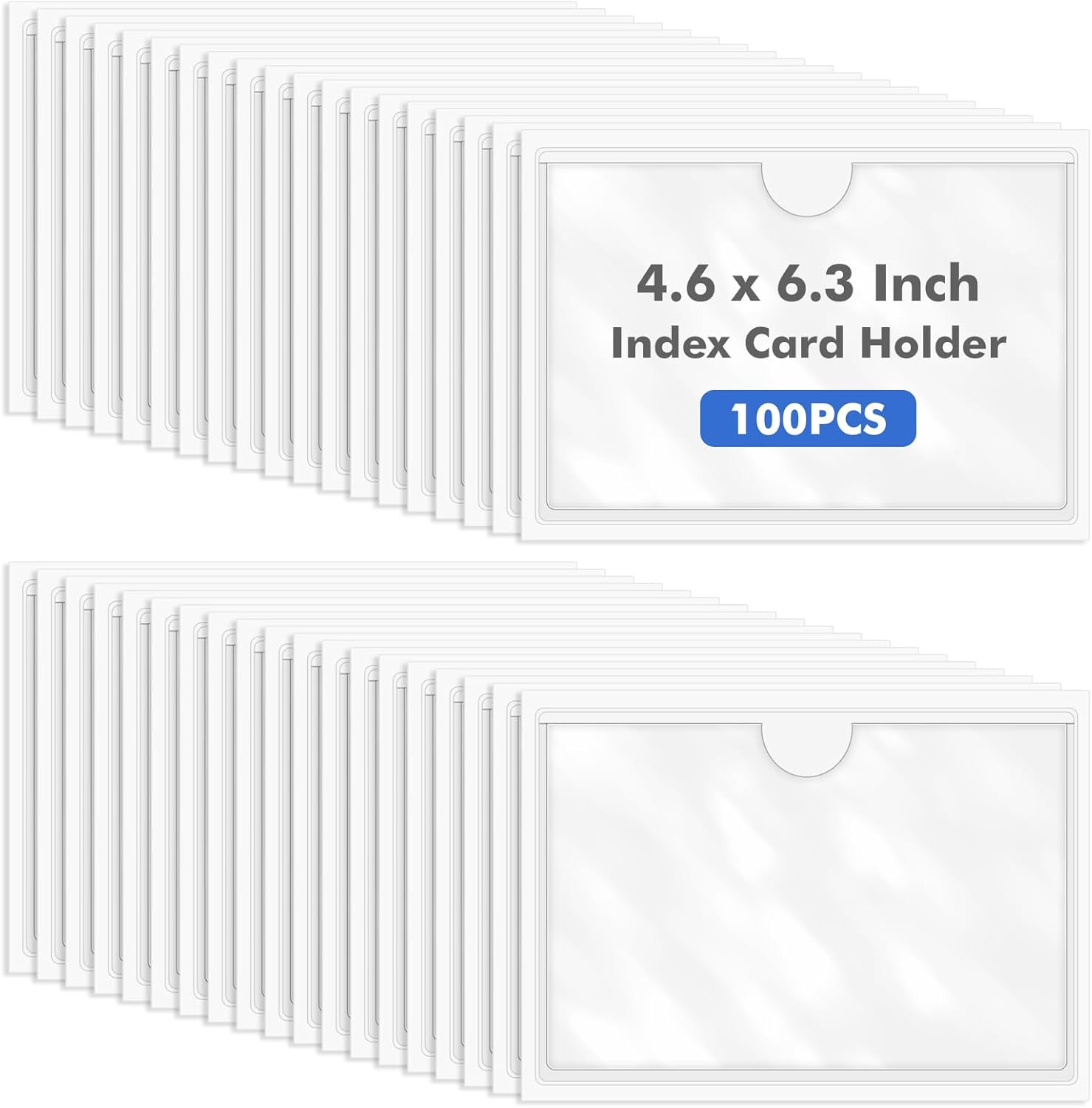- Great Value and Perfect Fit: You will receive 100 packs self adhesive index card pockets for 4”x 6” index cards. Measuring 4.6” x 6.3”, These adhesive label pockets are perfect for organizing everything from photos to name tags and reminders. Whether tackling a big project or keeping things tidy day-to-day, these adhesive label holders have you covered.