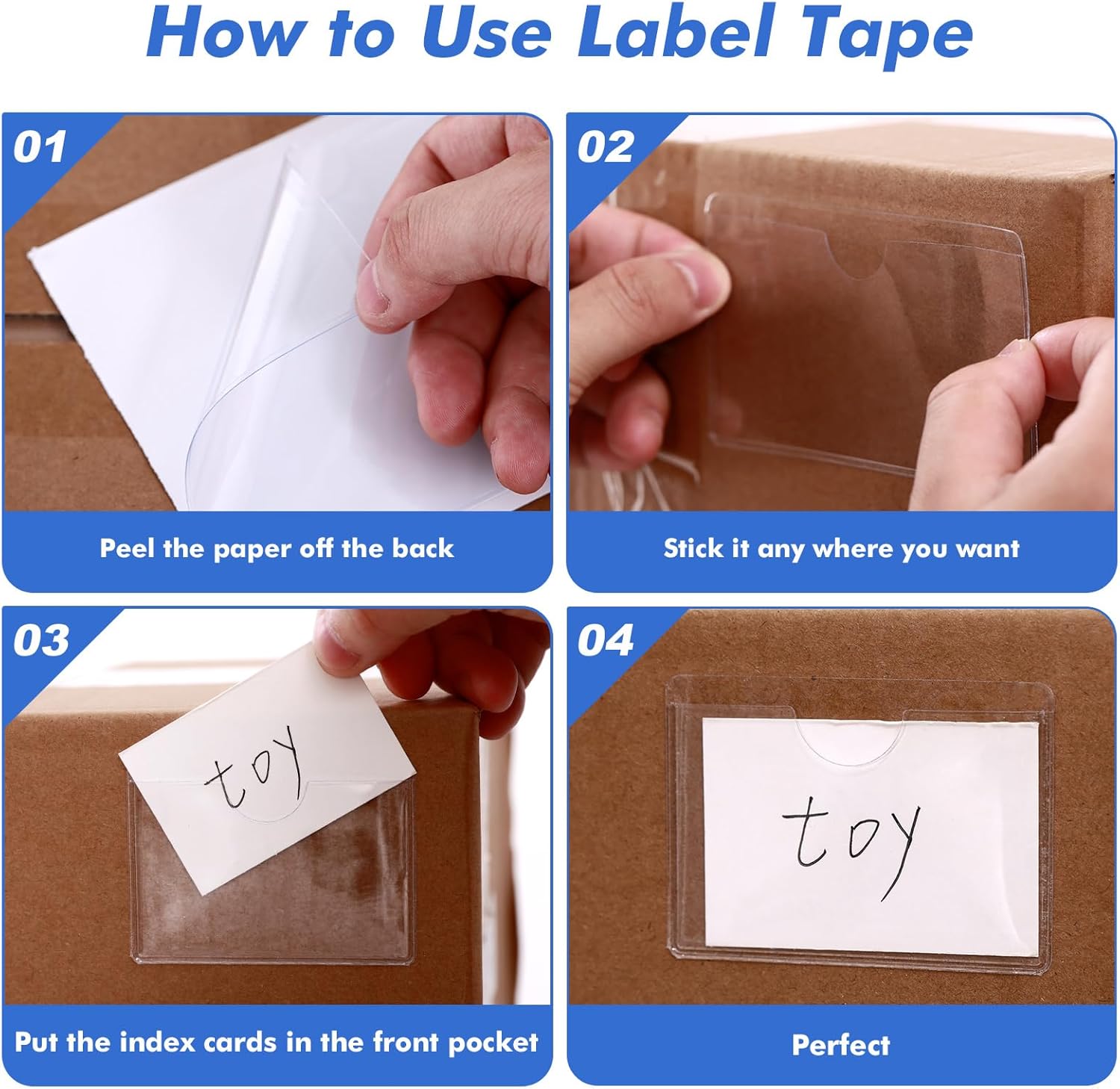 - Widely Used: Perfect for organizing and labeling in homes, offices, classrooms, libraries, retail stores, and events. Use adhesive index card pockets to tidy up storage bins, file folders, and shelves, or create professional displays like name tags, price labels, and signs. These adhesive pockets for labels adapt seamlessly to any environment, making organization effortless and efficient!
