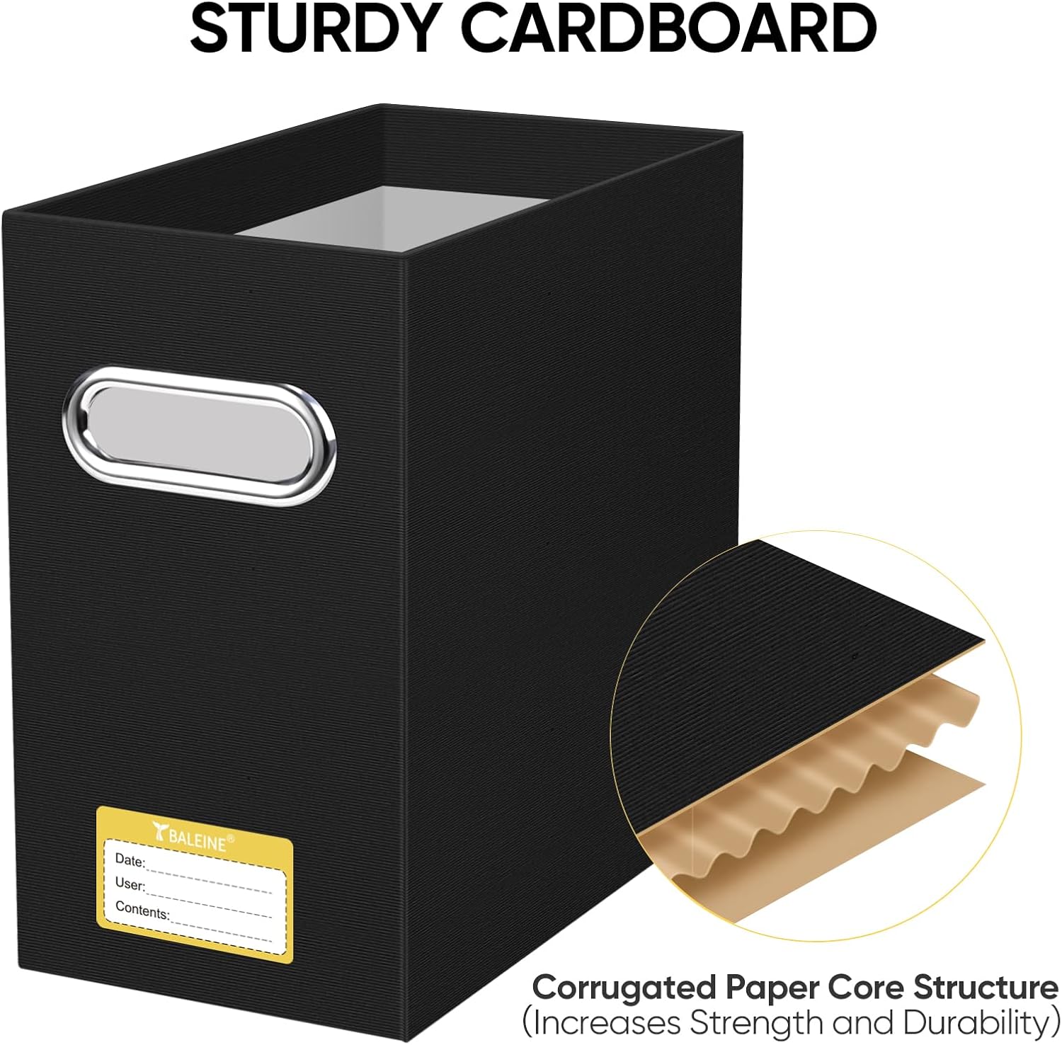 BALEINE File Organizer Box, Cardboard File Folder Organizer with Handle for Letter Size, Portable Collapsible Hanging Filing Box for Home Office Document Storage (2 Pack, Black)