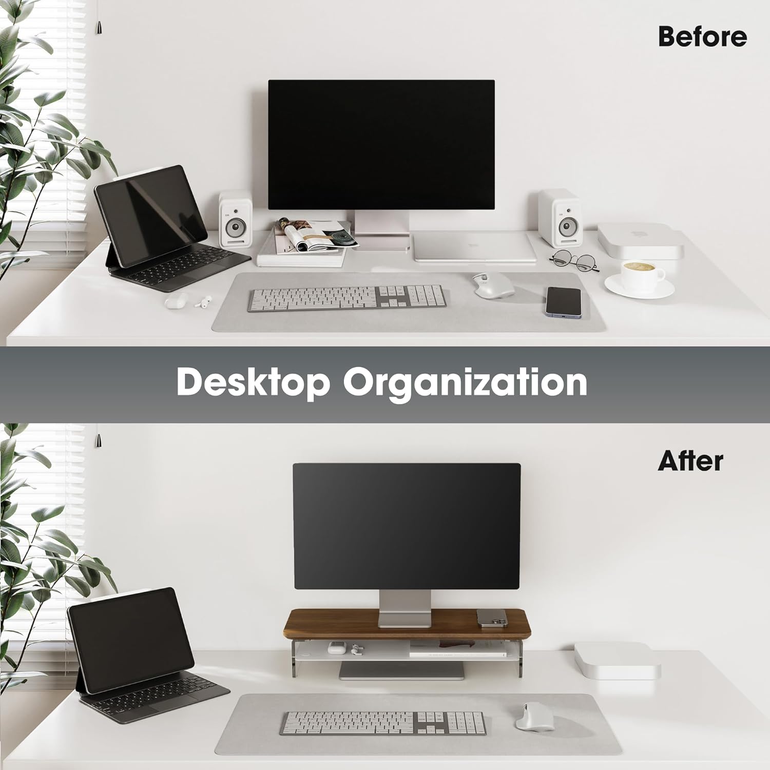 - 【Protect Your Cervical Spine & Eyes】: Acrylic monitor stand can raise your desktop by 4.7 inches to adjust to your eye level, reducing pressure on your neck and eyes.