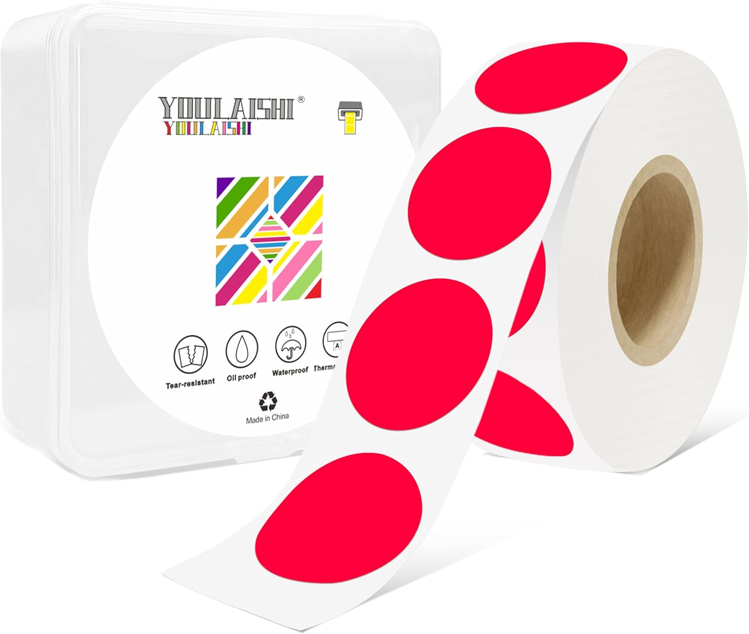 - What You Will Get: Each roll contains 1000 pieces of 1 inch round thermal labels. These color-coding sticker dots are easy to peel off and apply to various surfaces. Red color round stickers are suitable for home sorting, office organization, business displays, etc