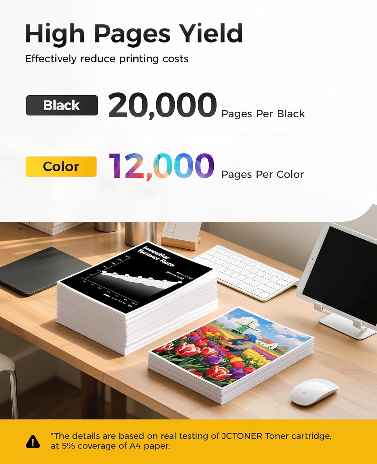 - The latest chip version: The JCTONER toner cartridges are equipped with the latest version of built-in chips, ensuring perfect compatibility between each toner cartridge and the printer. This enables you to print efficiently while maintaining stability and reliability, making installation convenient without the need for manual adjustments. All JCTONER toner cartridges have undergone strict quality testing and have obtained ISO9001 certification. High-quality toner cartridges can meet the demand for high printing volume. The fine toner ensures clear and stain-free printing results and extends the lifespan of the printer. You can purchase with confidence.