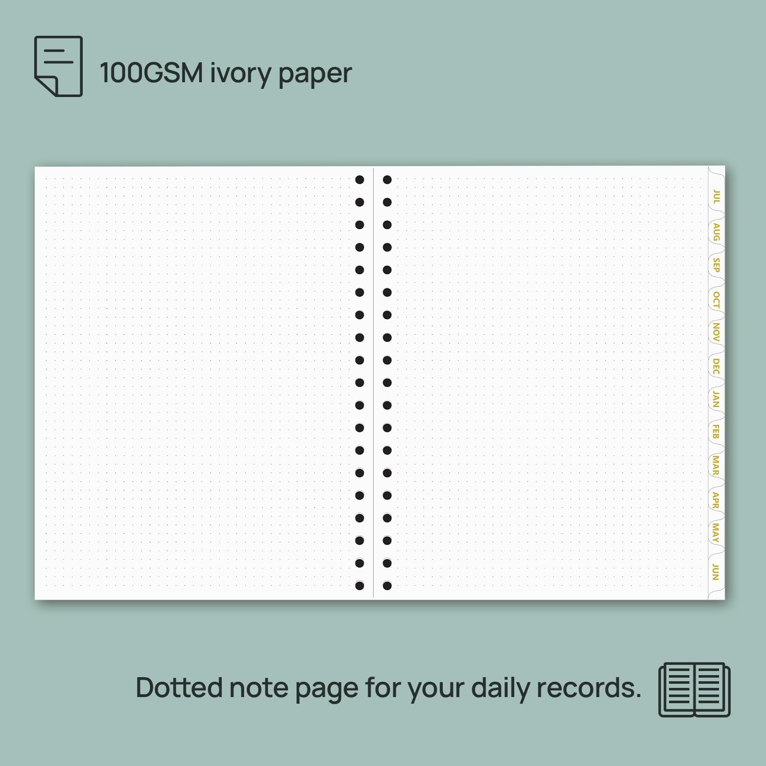- 2 PAGES PER MONTH: This 18-month planner (Jul.2025 - Dec.2026) presents a spacious and unique calendar-like design, each month has a 2-Page spread with dotted notes and to help you manage deadlines and goals effectively.