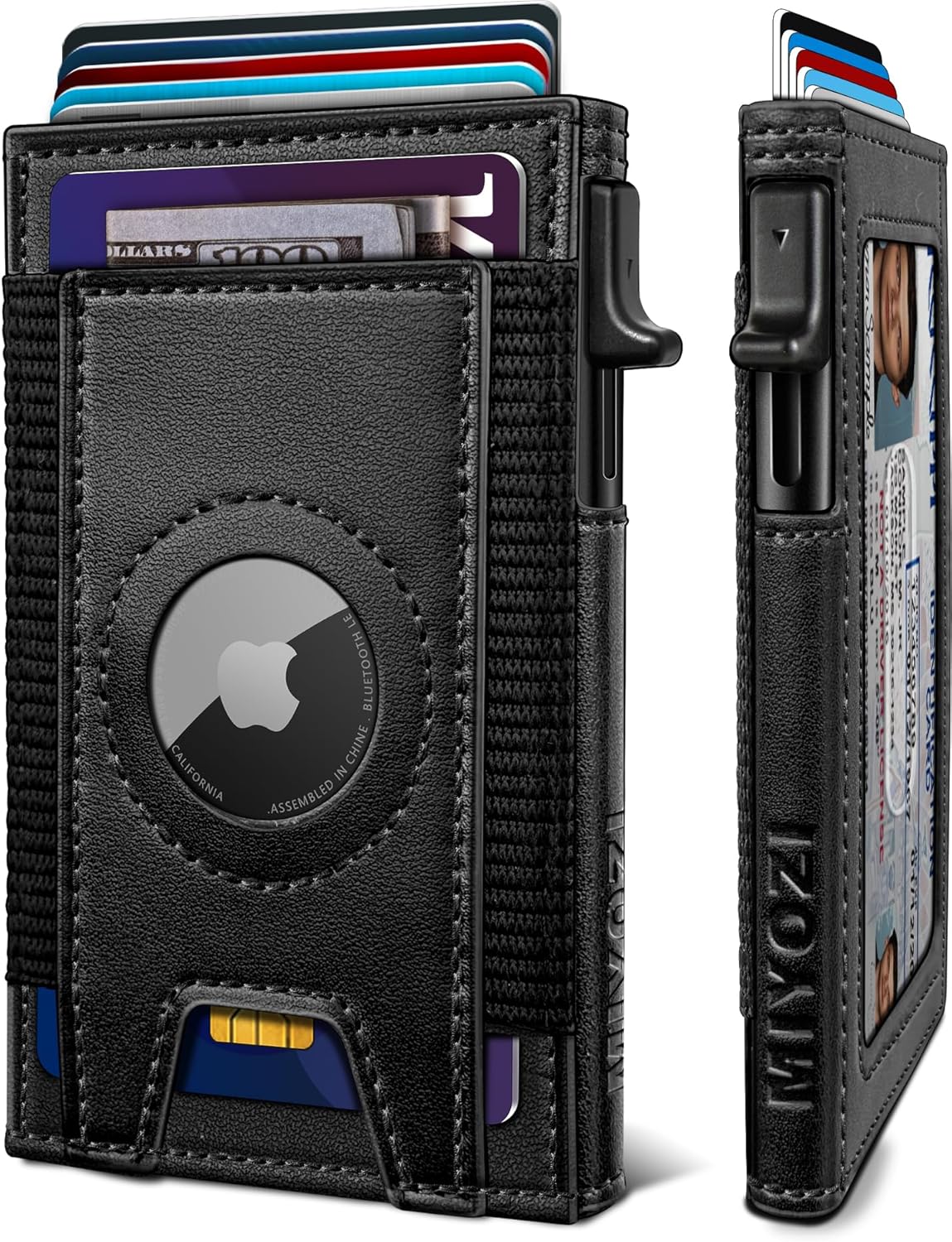 Airtag Wallet for Men, Slim Pop Up Credit Card Holder RFID Blocking Mens Minimalist wallet for 7-9 Cards ID Window, with Gift Box