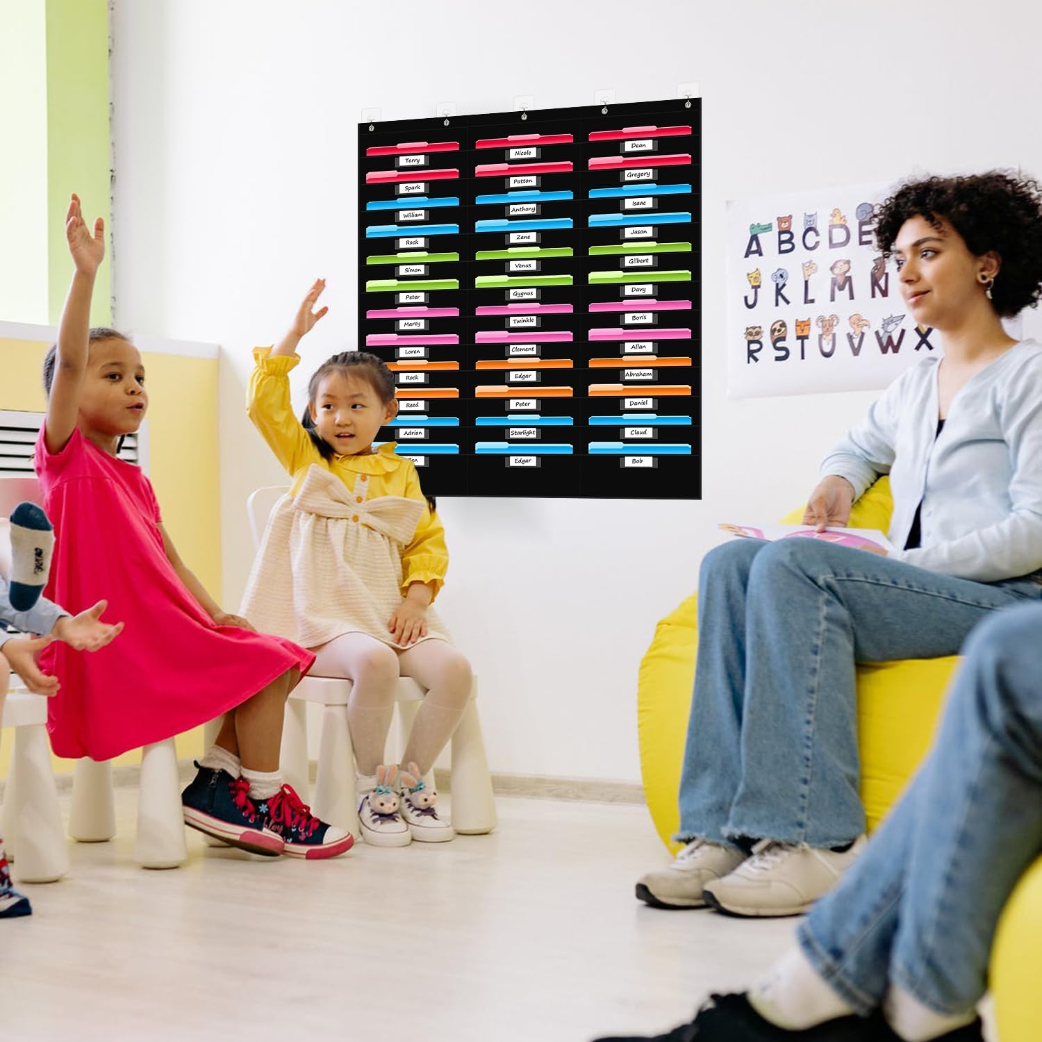 REGELETO 36 Pockets File Storage Pocket Chart with 36 Nametag Pockets, Hanging Wall File Organizer for Classroom and Office, Organize Your Assignments, Files, Scrapbooks, Paper (Black-36 Pockets)