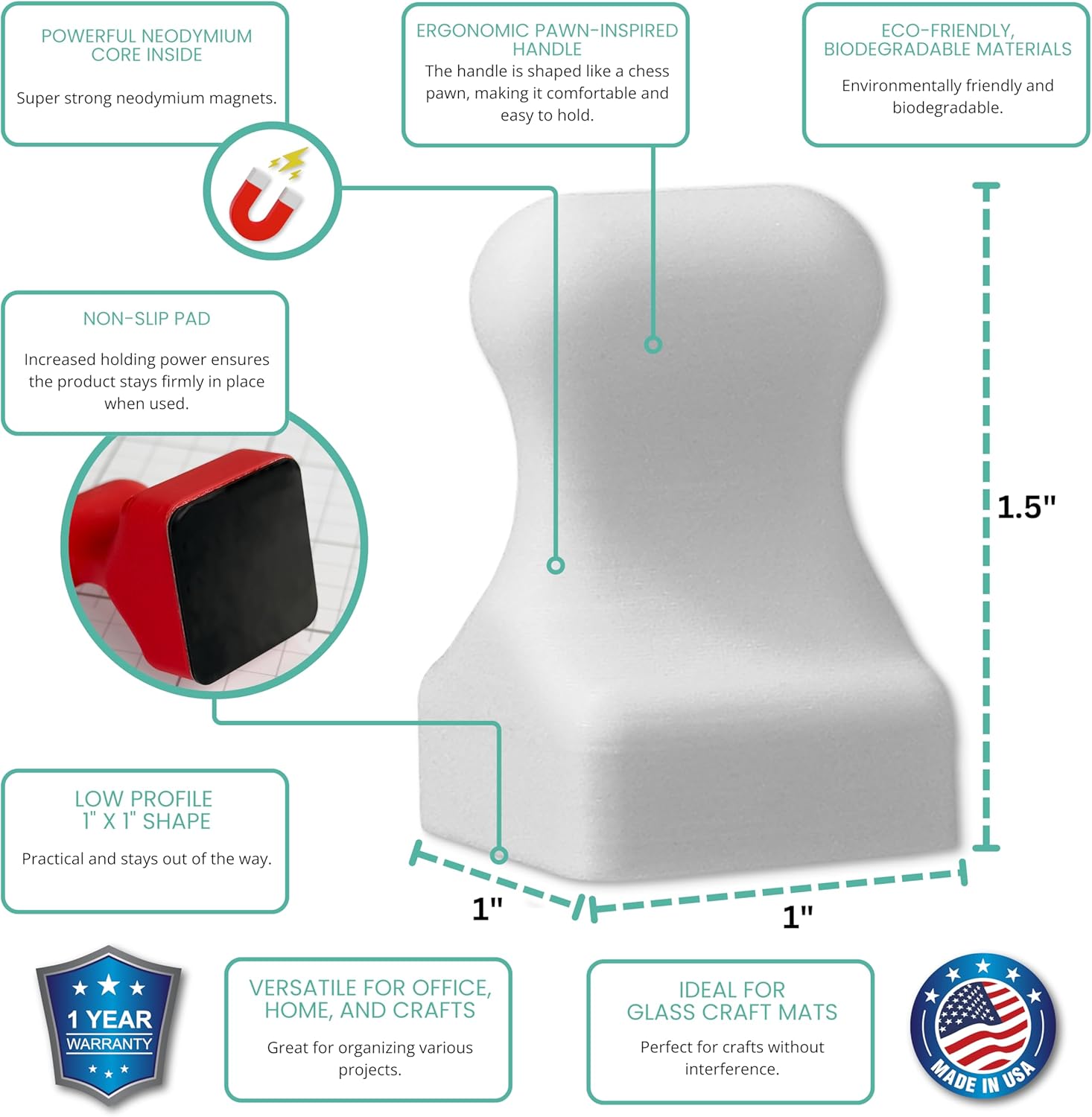 Glassboard Studio MiniPawn Magnet - Strong Neodymium Rare Earth Magnets for Fridge, Whiteboard, Locker & Magnetic Glassboards - Ideal for Crafting & Office Use - Strong Fridge Magnets (Snow White, 2)
