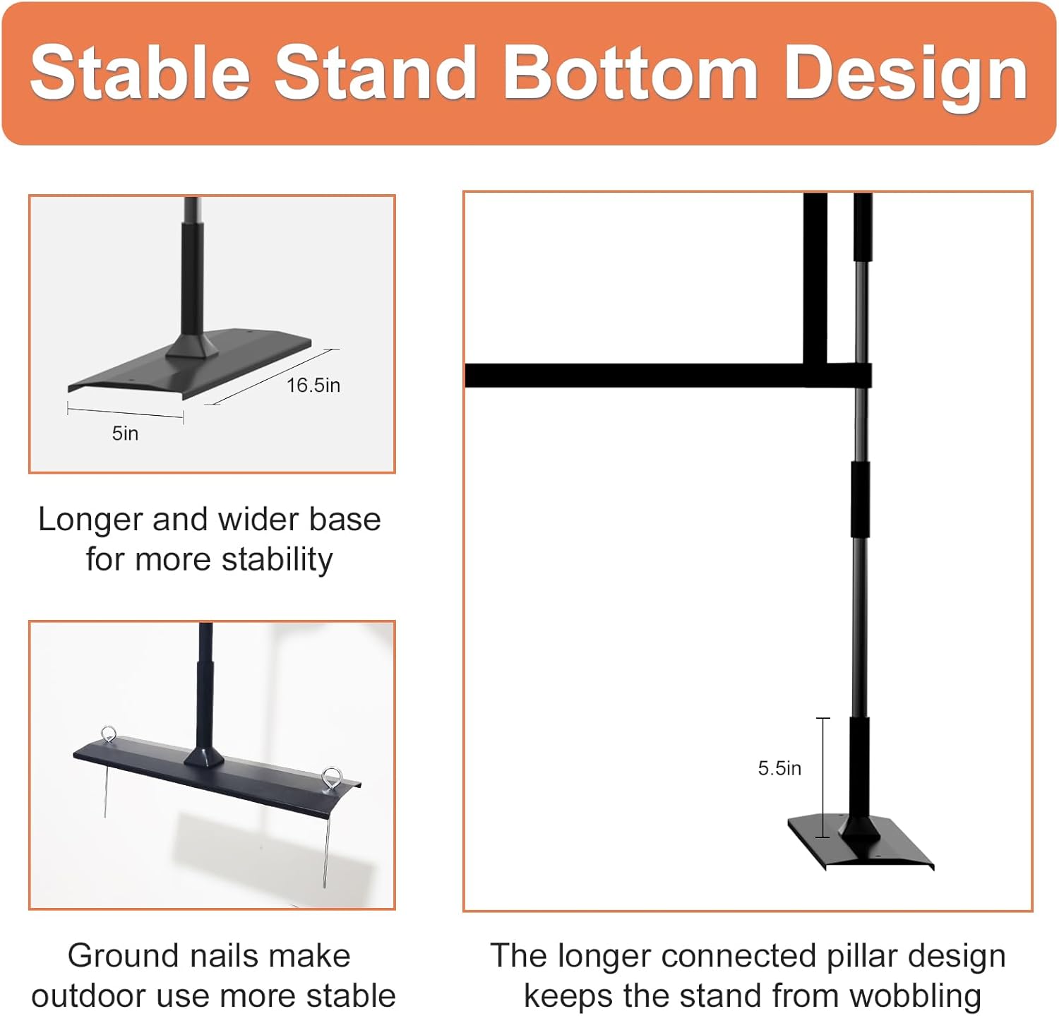 - Stable Stand: We solved the problem of unstable projector screen stand as a whole by upgrading the bottom iron plate and connecting pillar. The bottom iron plate has been lengthened, widened and weighted, and the connecting pillar that connects to the iron plate has been lengthened to 5 inches to improve stability, ensuring that your projector screen and stand are securely fixed in place.