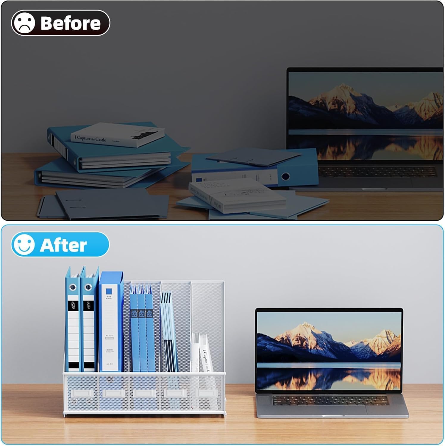 Marbrasse File Organizer for Desk,Desk File Organizer with 5 Vertical Compartments Mesh Magazine File Holder for Office Home School