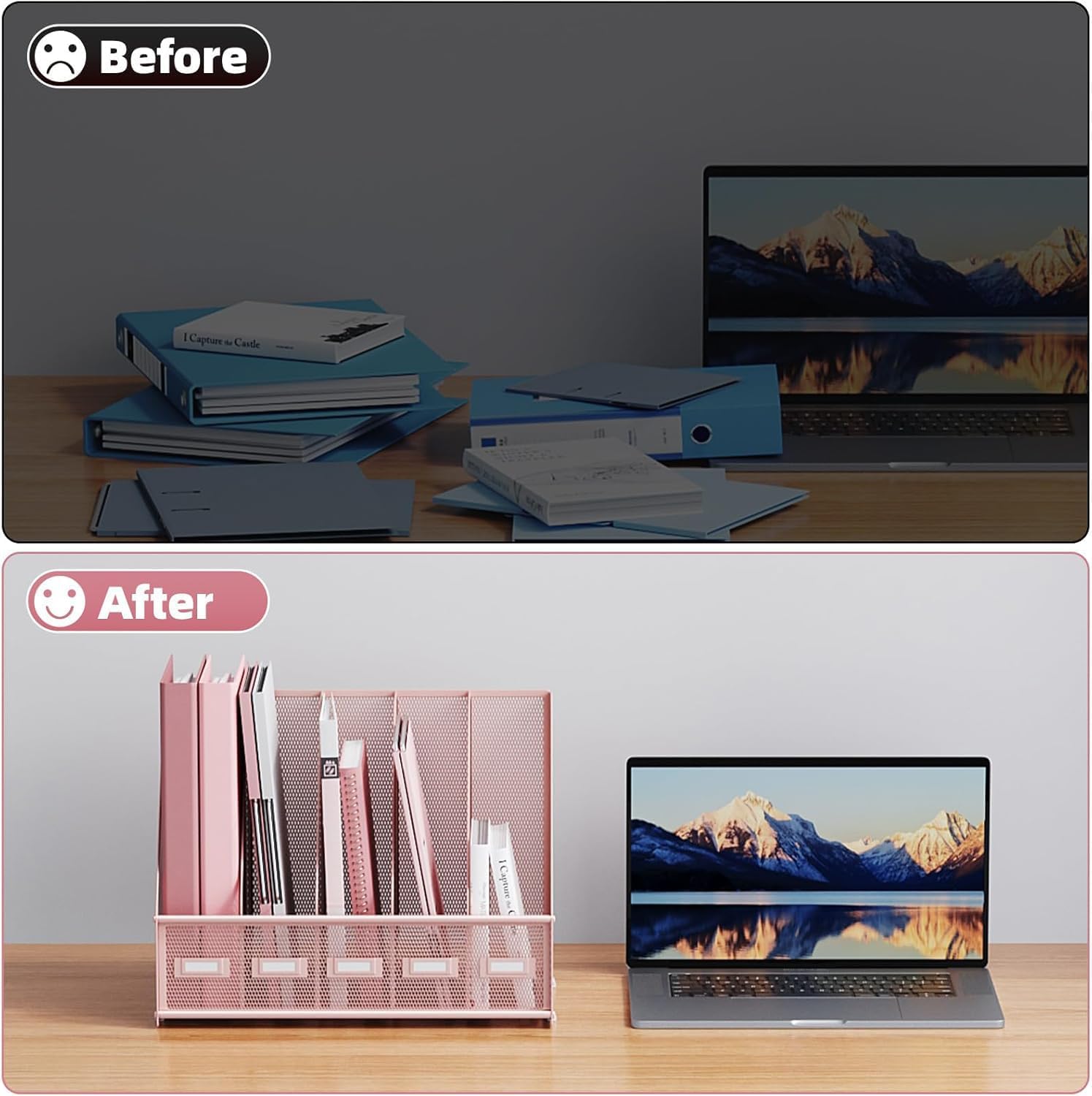 Marbrasse File Organizer for Desk,Desk File Organizer with 5 Vertical Compartments Mesh Magazine File Holder for Office School