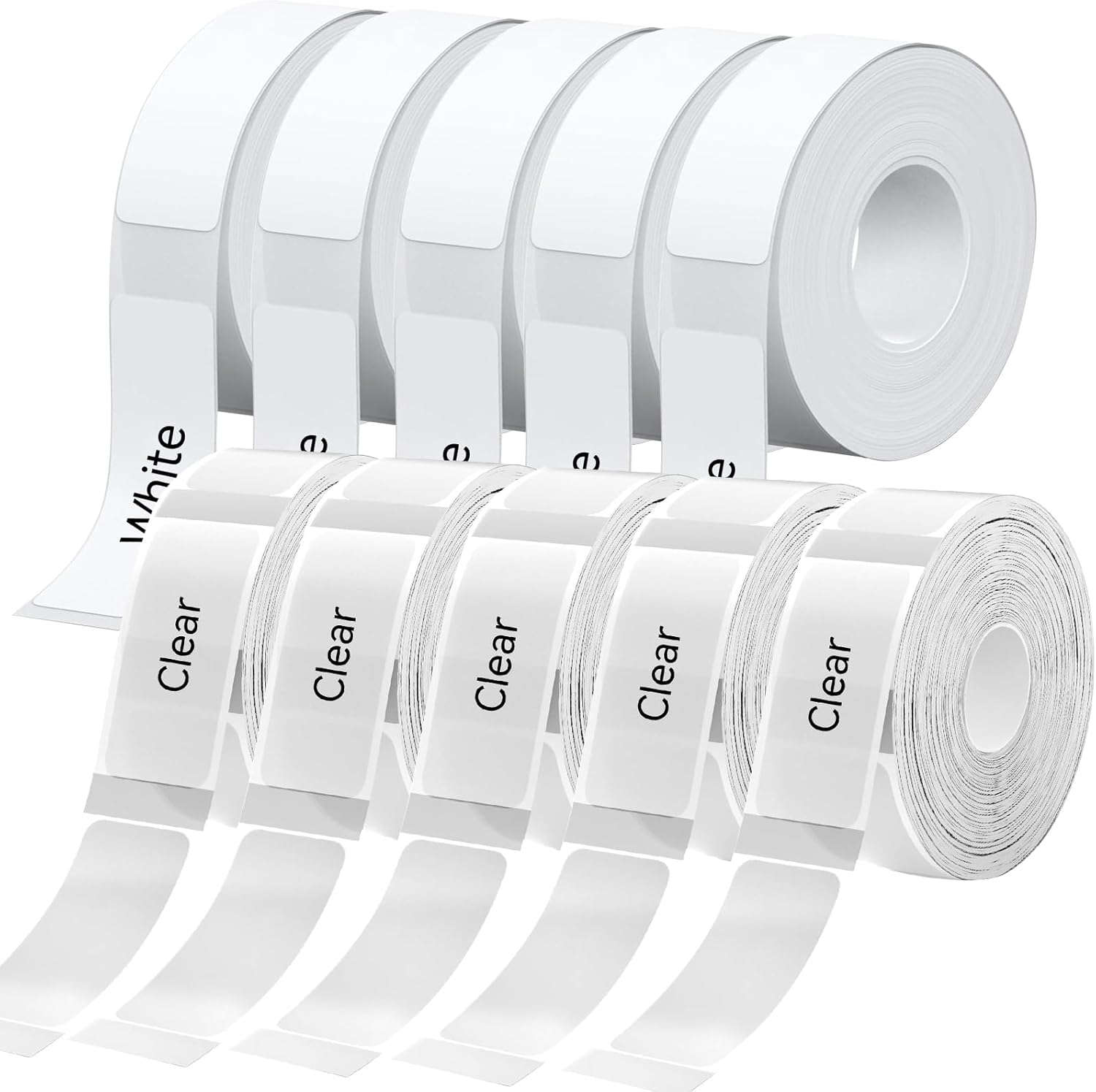 - Label Maker Tape — You could get 10 rolls of labels in total, with sizes 12x40mm (0.47"x1.57"), 165 labels/roll, and 1650pcs in total. It is 5 Rolls clear and 5 Rolls white.