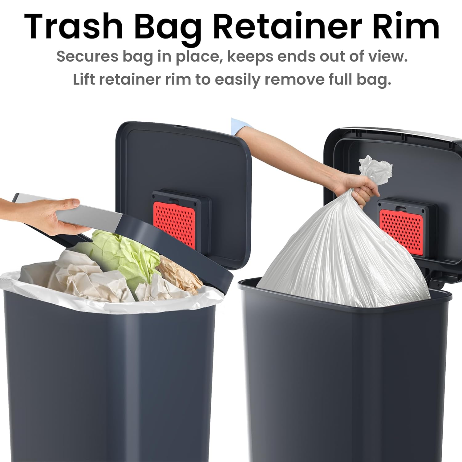 - MOST POPULAR KITCHEN TRASH CAN WITH LID + ODOR CONTROL - OUR PROMISE TO YOU – Your 100% satisfaction on our kitchen trash can 13 gallon is assured; backed by Full-Service Manufacturer's Warranty and Dedicated Customer Support (see user manual).