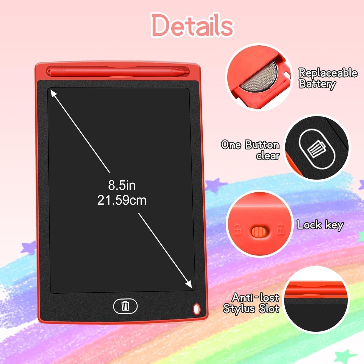 - Eye Protection: The 8.5 inch new drawing board comes with eye protection LCD screen and it will not hurt kids' vision. Even if kids draw for a long time, parents don't have to worry about their eyesight while they can enjoy the fun of drawing