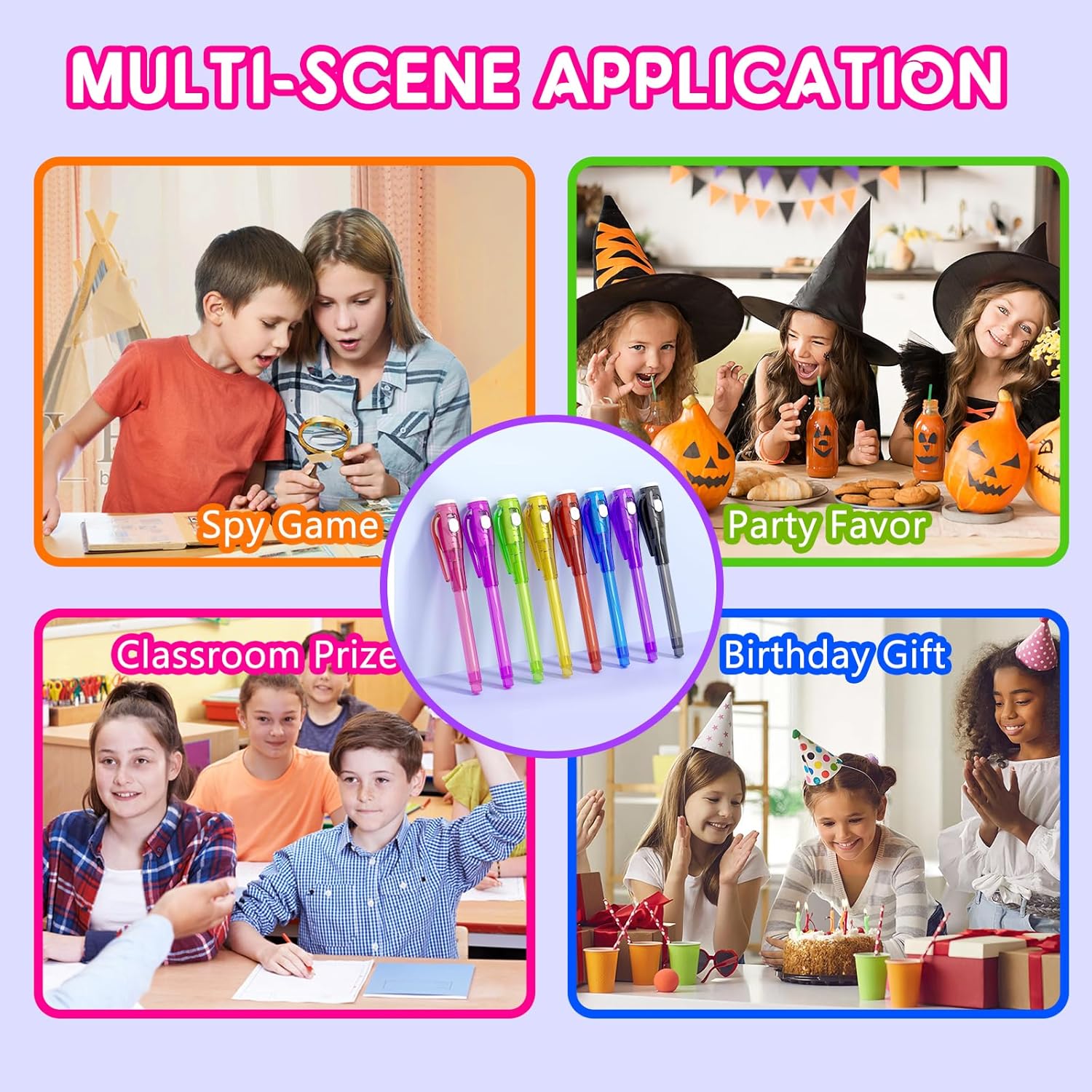 Invisible Ink Pen Spy Game for Kids, Party Favors Toys for Girls Boys, Magic Markers for Boys Girls Fun Outdoor Toys, Birthday for 6-13 Year Old Girls Boys (8PCS)