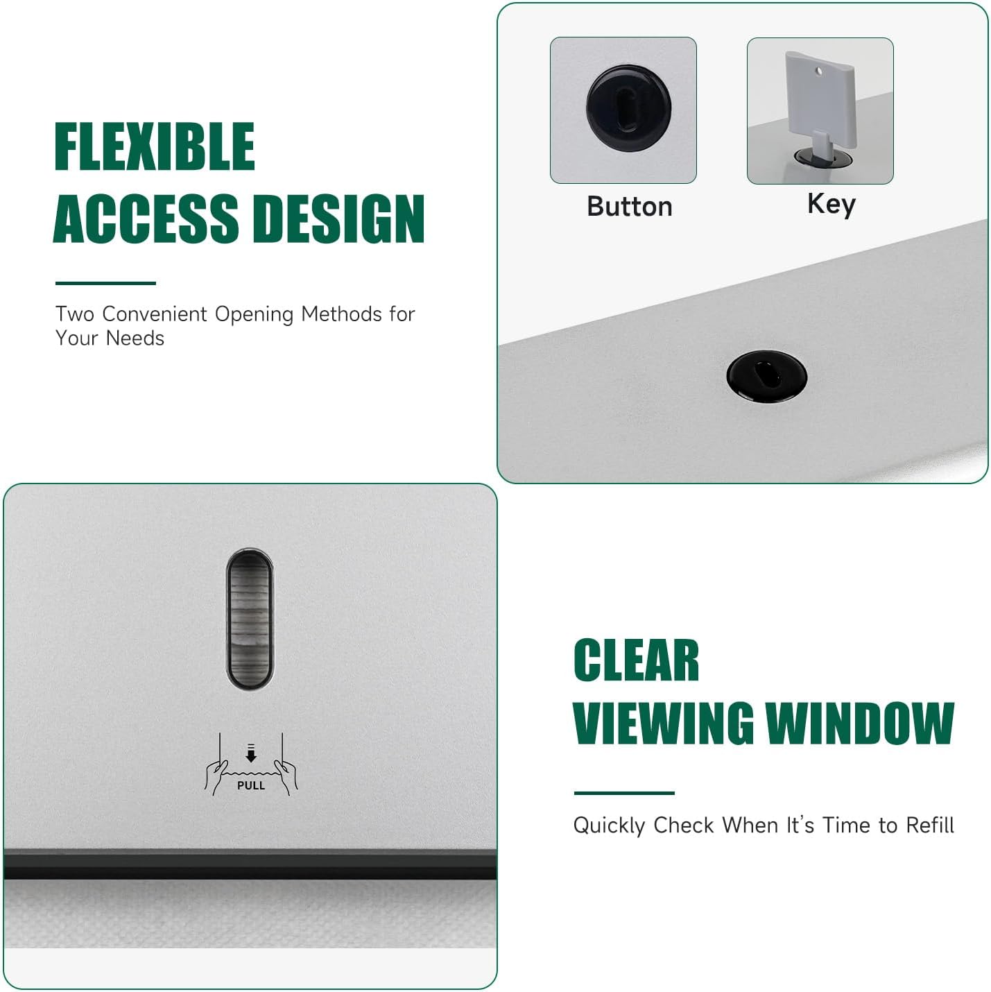 - 200-Towel Capacity – Holds up to 200 paper towels; clear front window lets you monitor refill levels at a glance
