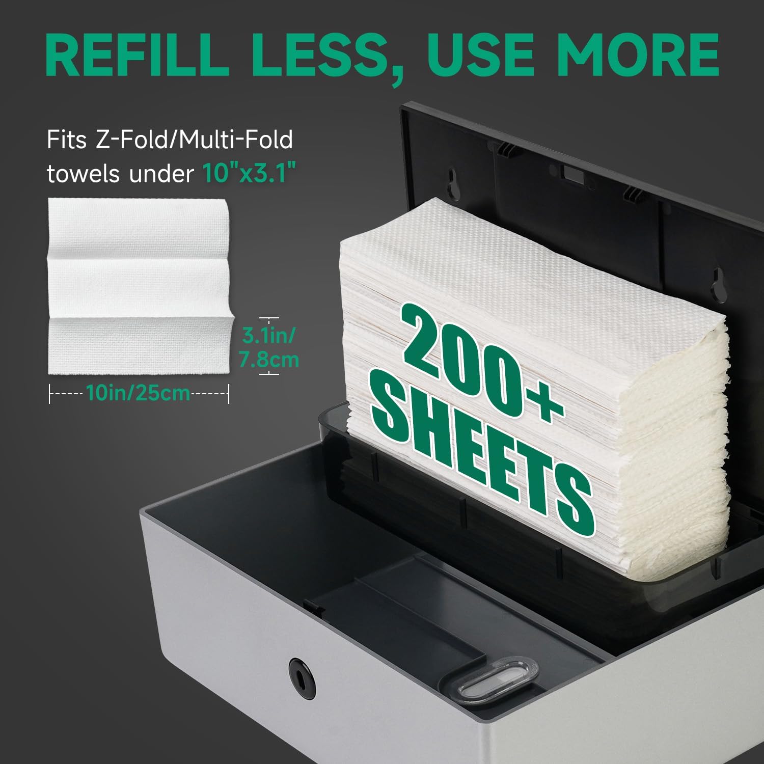 - Fits Z-Fold/Multifold Towels – Compatible with standard Z-fold and multifold paper towels (max 3.1" folded width)