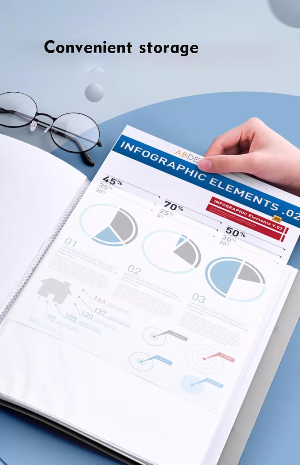 - 100 Secure Pockets for Maximum Organization — Holds A4-sized documents neatly; each pocket is extra-thick to prevent tears and spills, keeping your papers safe and organized.
