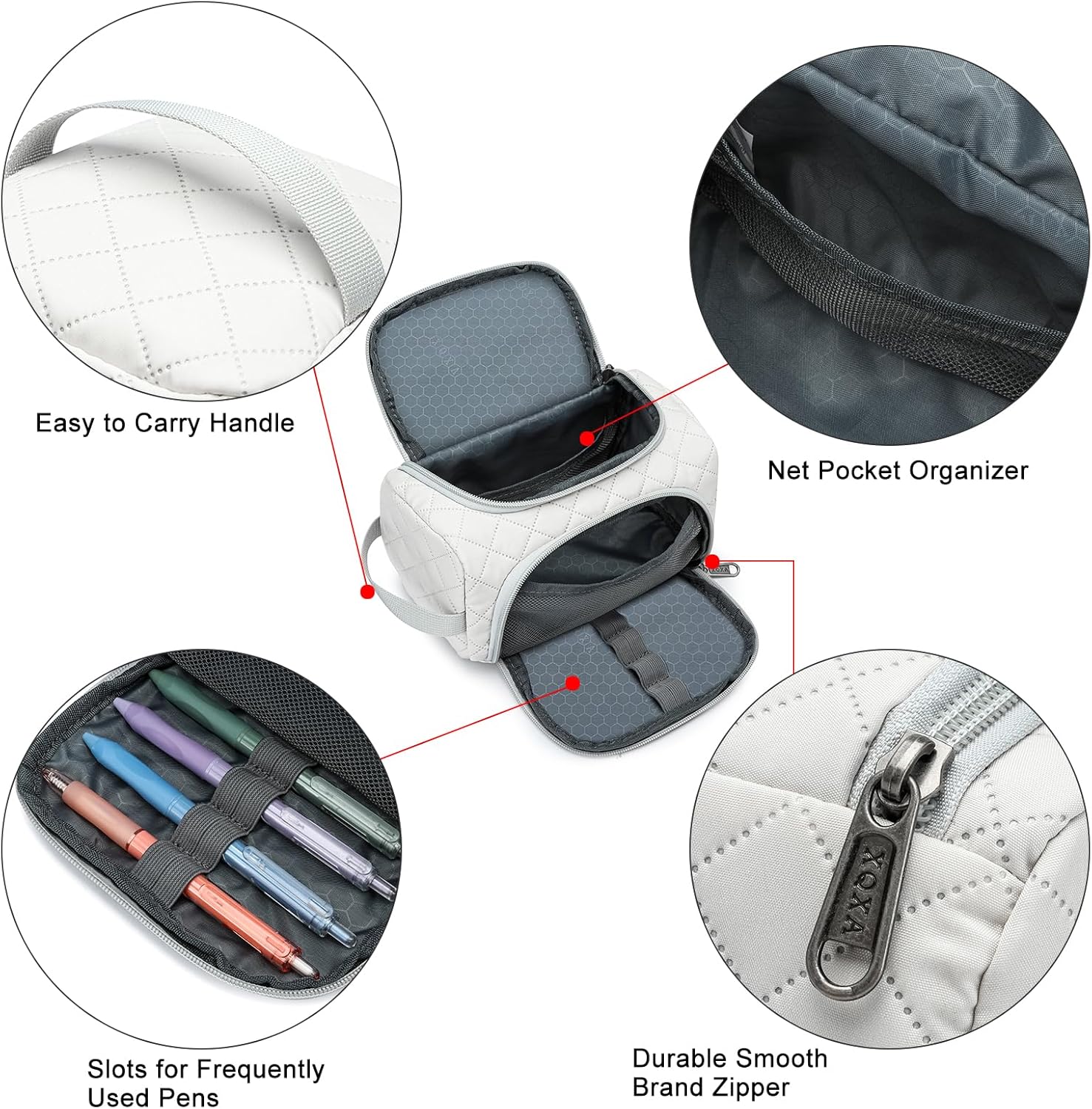 - 【Unique Design Pencil Case】Open this pencil bag from the top or front flap, you can fix commonly used pens in the flap which has 4 solts. An additional handle design on the side makes this pencil case easy to carry
