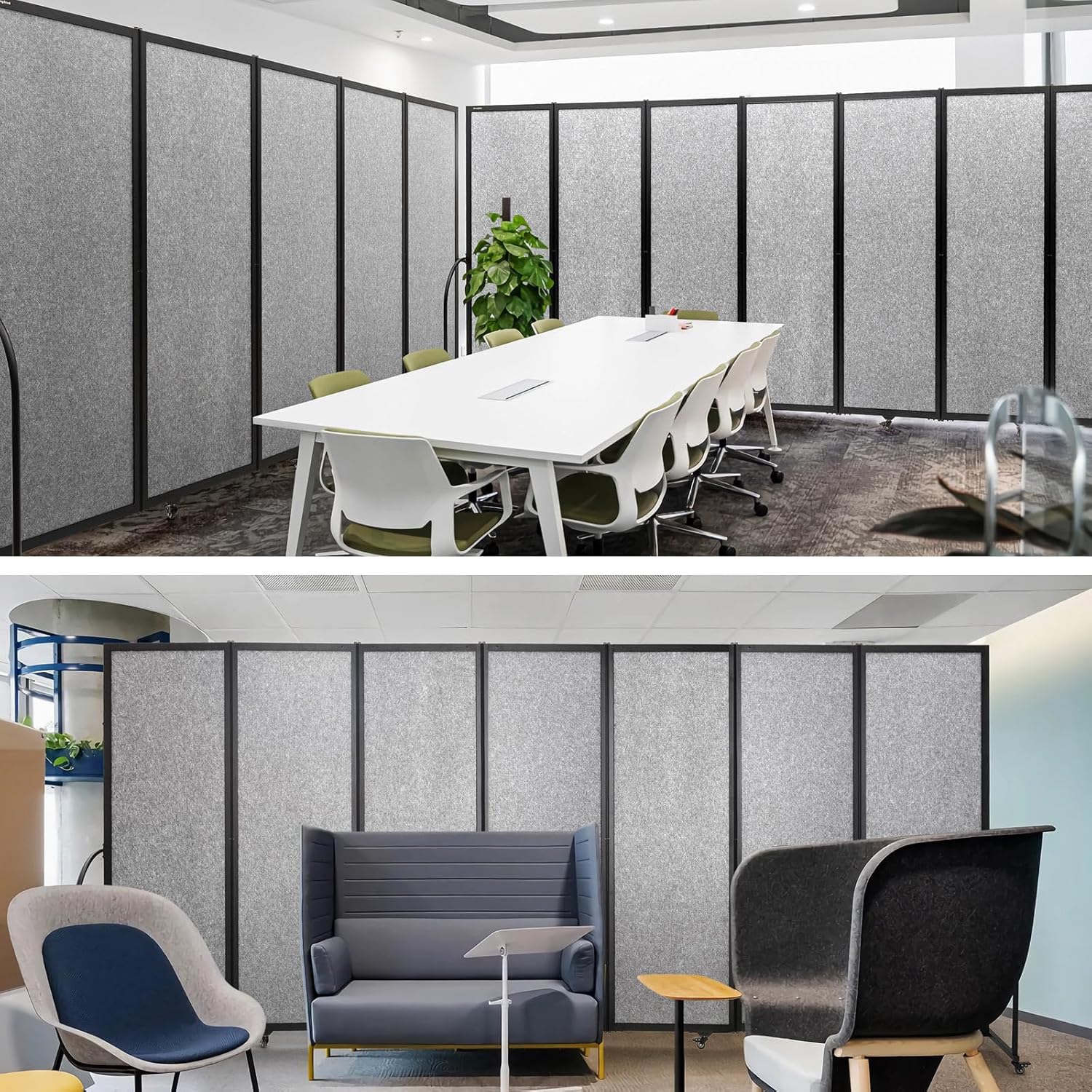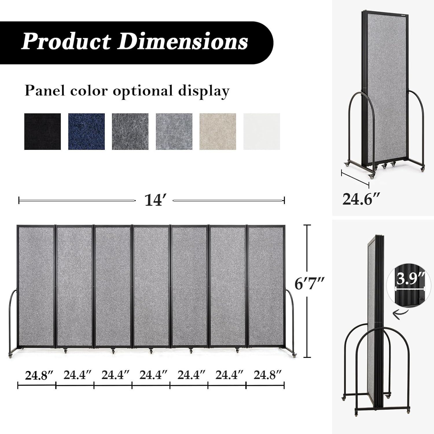 Folding Room Partition,Privacy Room Screen with Arms,Office Dividers Partition Wall,14'3"L* 6'7"H,Light Grey