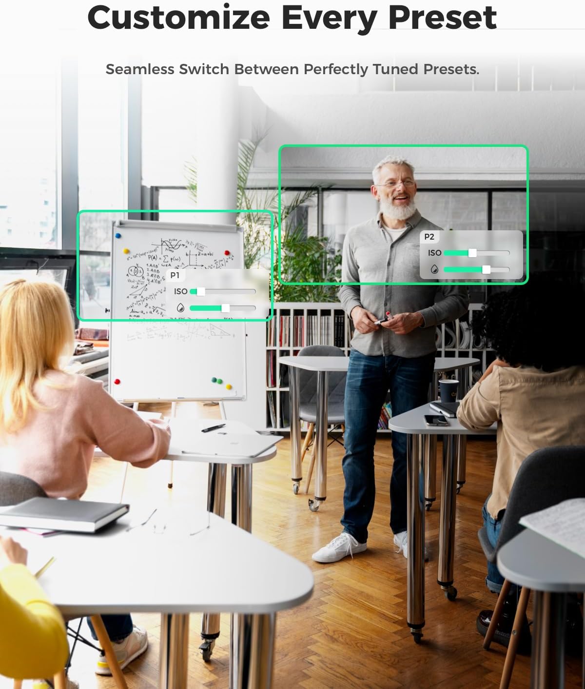 - 【Customizable Presets】Our computer camera newly upgraded preset position modes not only can set multiple preset positions, but also customizes separate parameters and AI tracking modes for each preset position. Effortlessly switch scenes and keep every frame perfect.