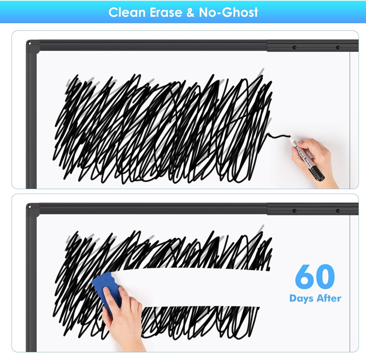 - 2X Stain Resistantence,Build to last: With specialized 365℉ baking technique, maxtek rolling whiteboard features 2X surface density that of a regular whiteboard, making this large white board hard to scratch and 50% less ink absorbed. Therefore, we can easily erase any handwriting, even left for a long time, without leaving any ghosting