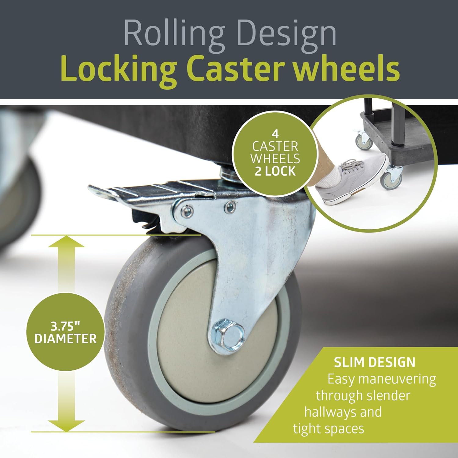 - SLIM DESIGN: Utility rolling cart is slender in design and easy to maneuver through the narrow halls and aisles of your office, school, or workspace