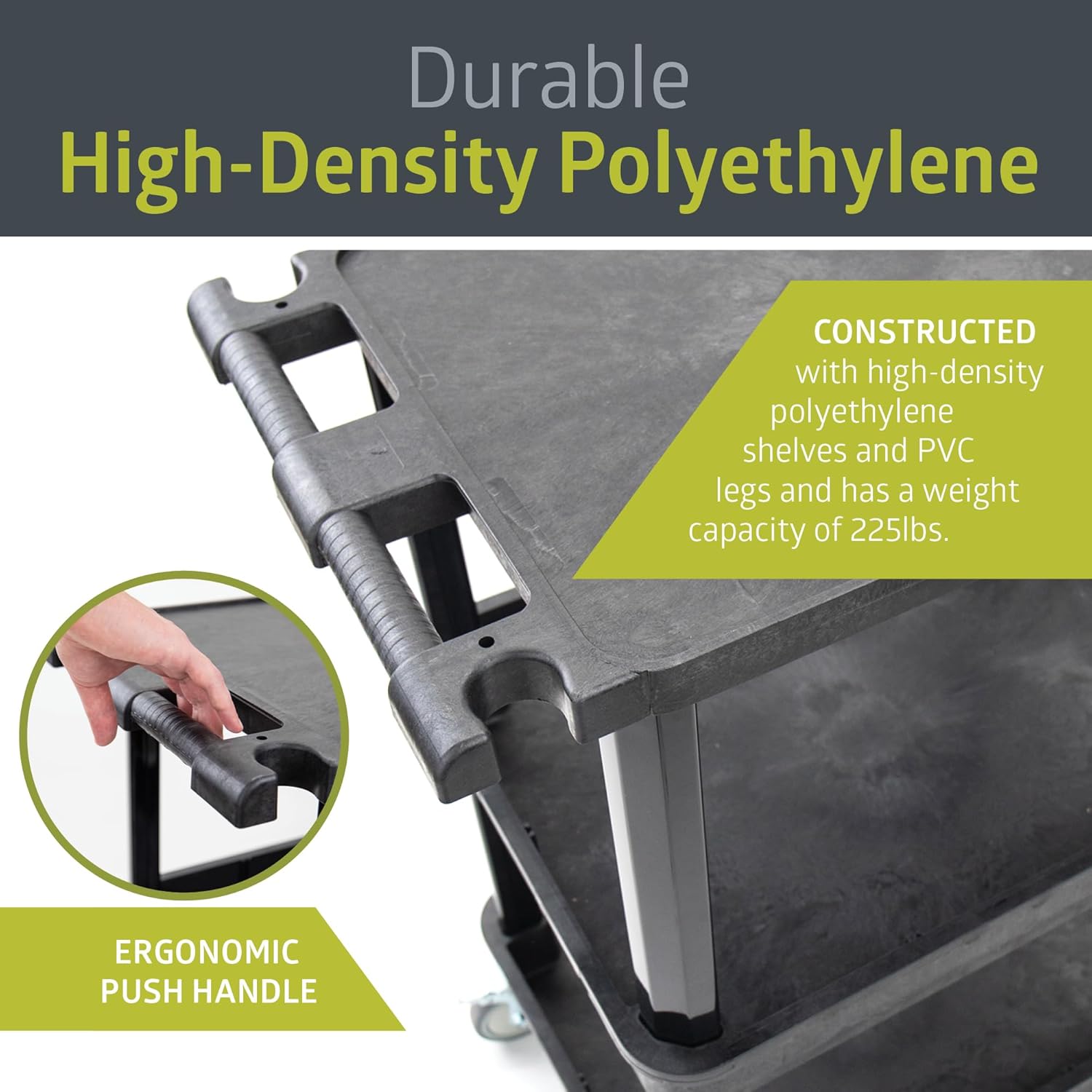 - 3-SHELF MULTIPURPOSE MOBILE UTILITY CART: Multi-layer service utility cart with one flat shelf and two bins to secure office supplies, crafting goods, food, tools, and more