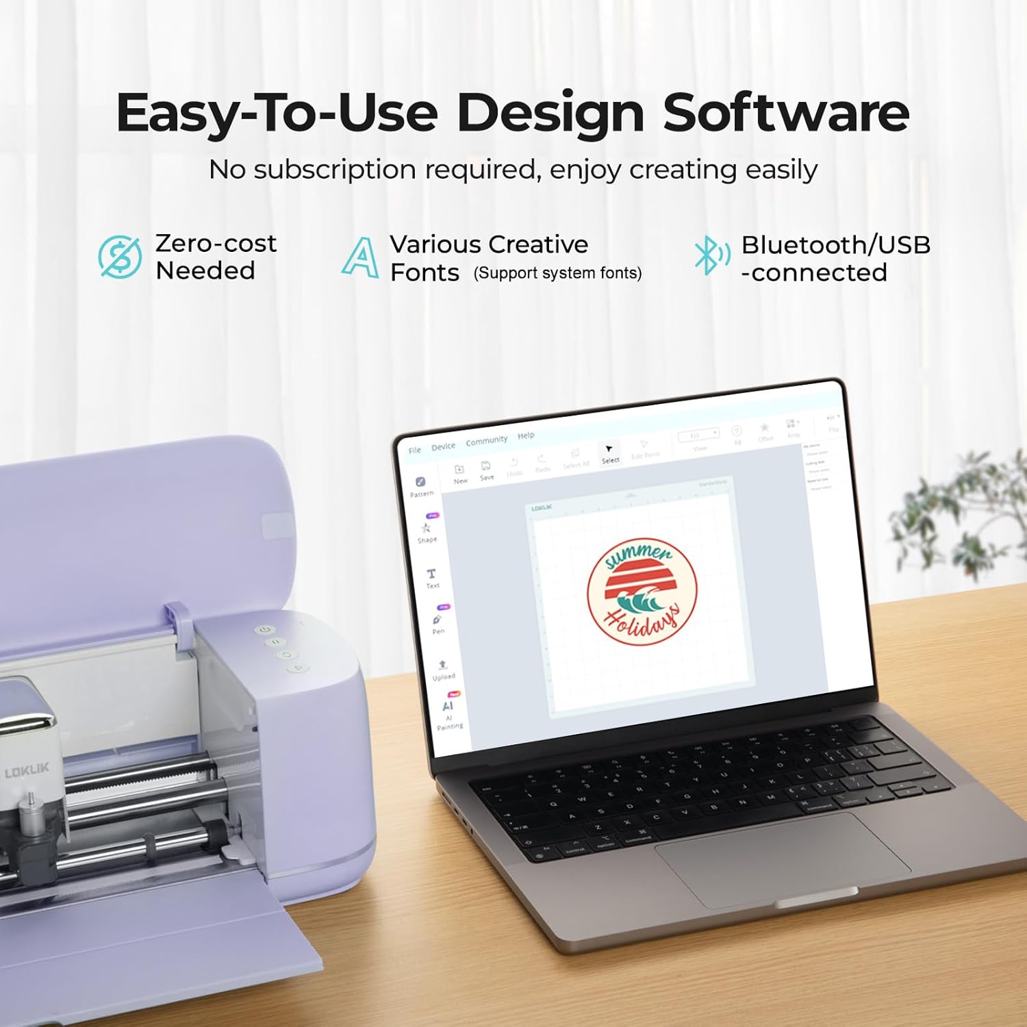 - SAY GOODBYE TO EXPENSIVE APP BILLS: Pairs with a all-access software LOKLiK IdeaStudio, you can use all the features of this cutting machine without subscription fee, get over 50,000 gratis designs and various creative fonts, which are constantly updated. Plus, built-in cutting-edge AI painting feature will help turning your fantasy into personalized designs in seconds. Unleash your creativity without the cost constraints