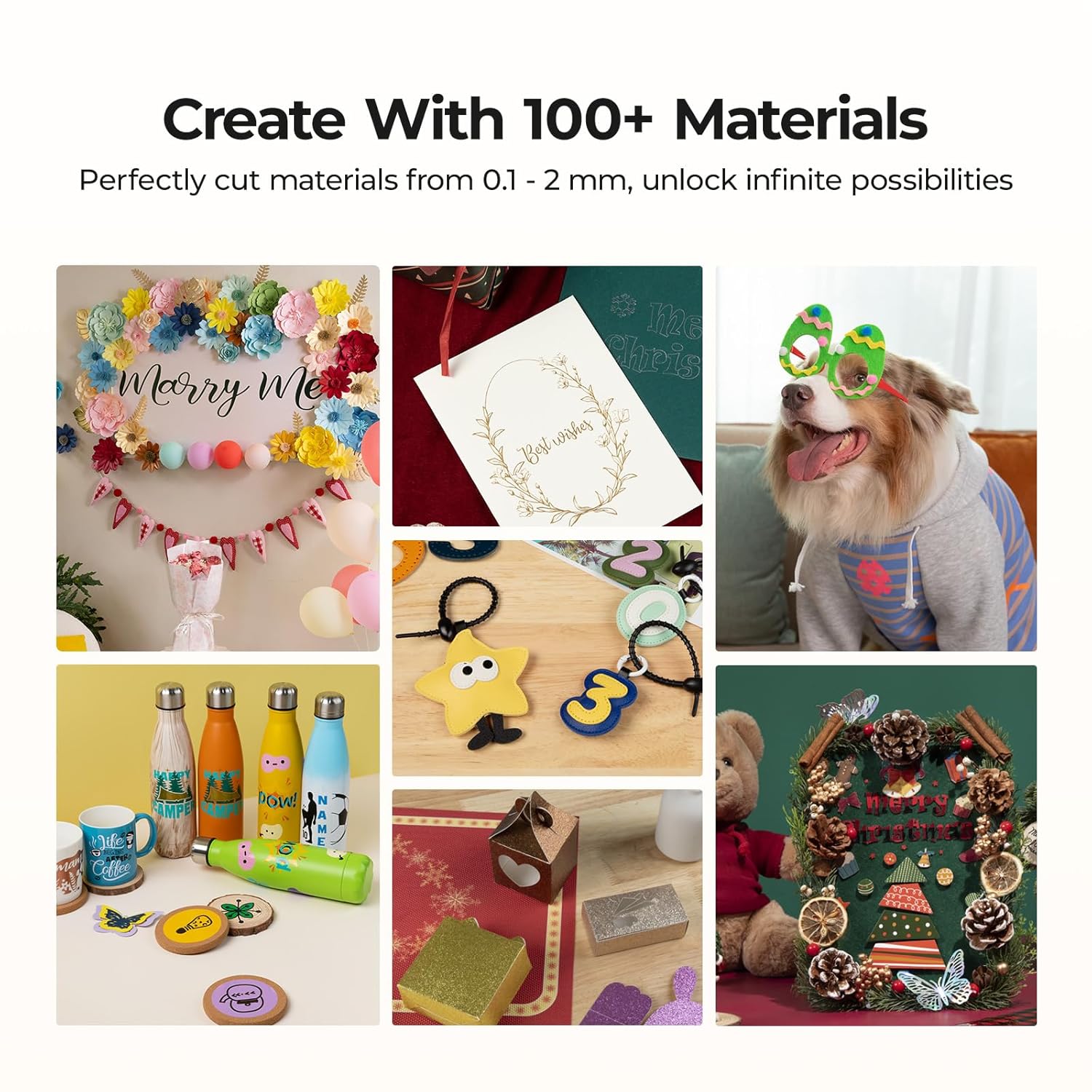 - CUT 100+ MATERIALS WITH EASE: The vinyl cutter allows crafter to easily handle more than 100 materials from 0.1mm to 2mm, from vinyl and paper to specialty items like faux leather and glitter cardstock. Especially suits for HTVRONT craft materials. An ideal cutting machine to meet a wide range of crafting needs, allowing you to explore endless creative avenues