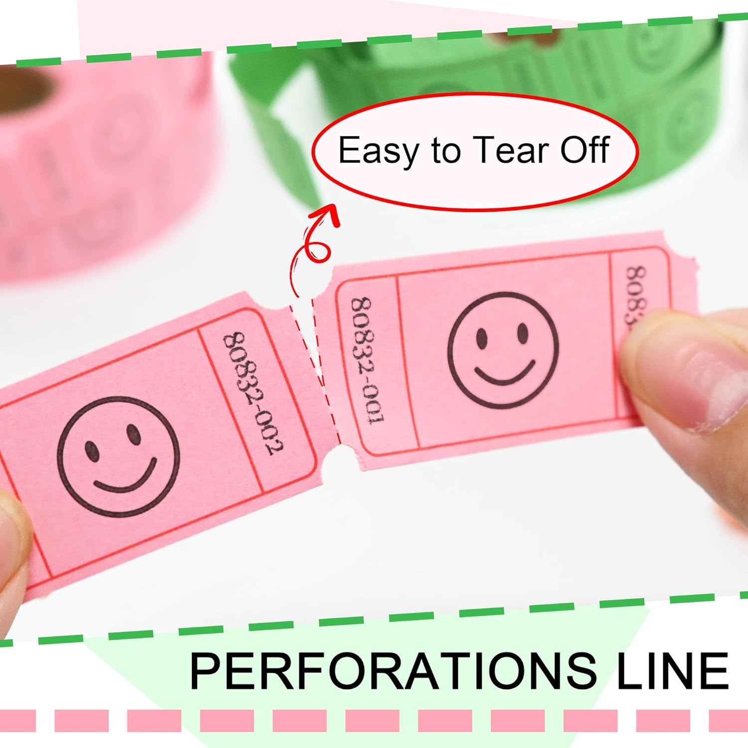 L LIKED 1000 Raffle Tickets, Smile,2 Color Set of 500 1" x 2" Single Roll,Tickets for Raffles, Carnival, Door Prizes and Class Reward - Pink/Green