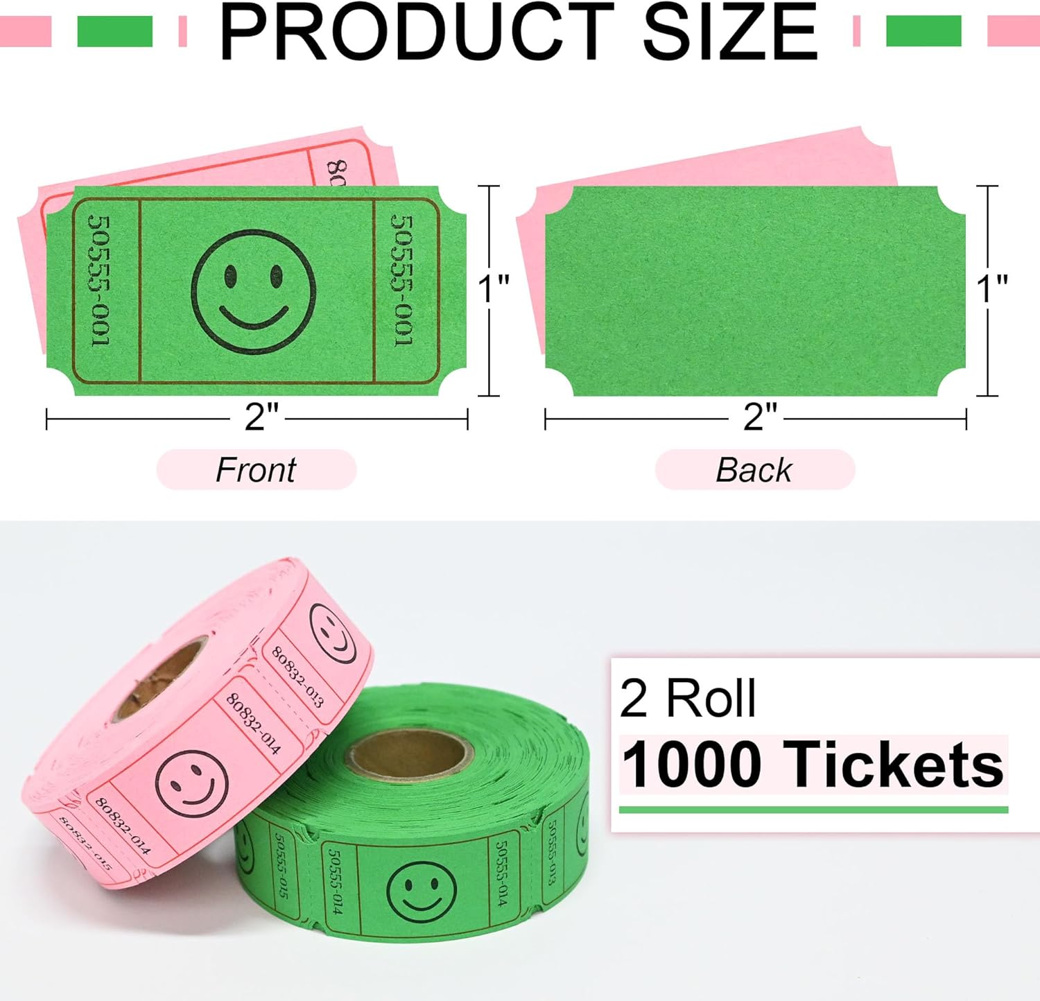 - DUAL-COLOR DESIGN: The tickets come in a vibrant pink and green color set, with 500 tickets of each color.