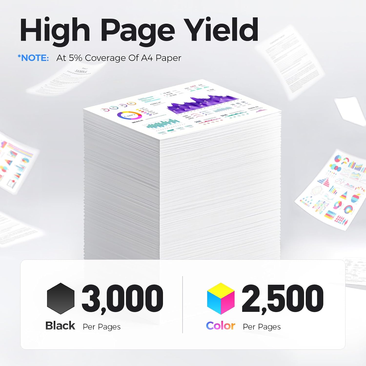 - High-Yield: up to 3,000 pages per C230 C235 Black and pages per 2,500 Color (Total 10,500 pages, 5% coverage).