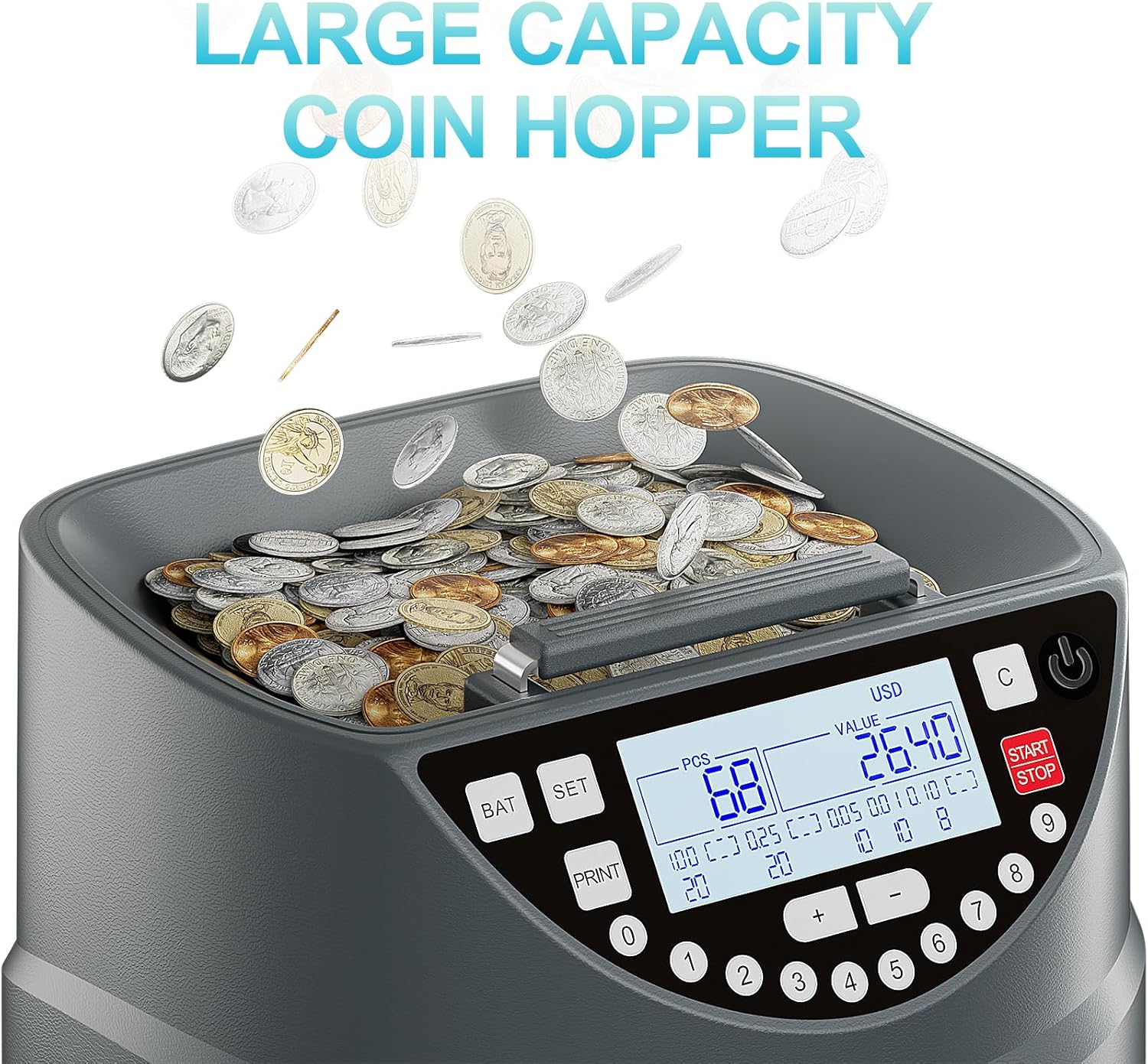 - 【User-Friendly】: Easily sort and count mixed coins by placing them in the tray and pressing start. The machine will automatically sort and count each denomination accurately.