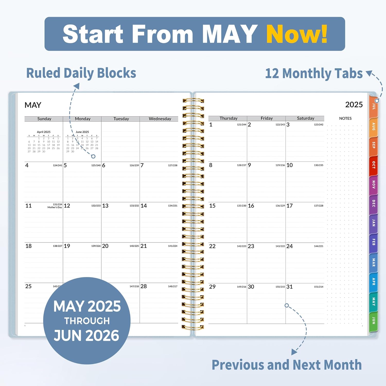 - 2025-2026 Professional Planner: Cover from July 2025 to June 2026, Features 12 months of weekly and monthly pages, 2 additional monthly pages (May 2025 - June 2025) are included for all your planning and scheduling needs, with Lay-flat capability and measures 8.5" x 11".