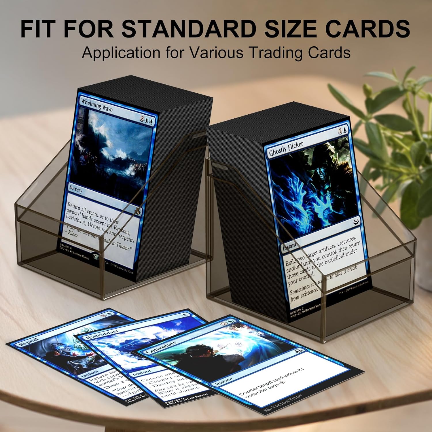 - 【One Size to Fit All】The size of the card storage box is perfect,light weight, easy to open, ergonomic and more than enough room for 100 sleeved cards and some tokens.Fit for standard card in various brands, trading card, baseball card, sports card and more. Designed for 100 double-sleeved or 120 single-sleeved standard sized cards.