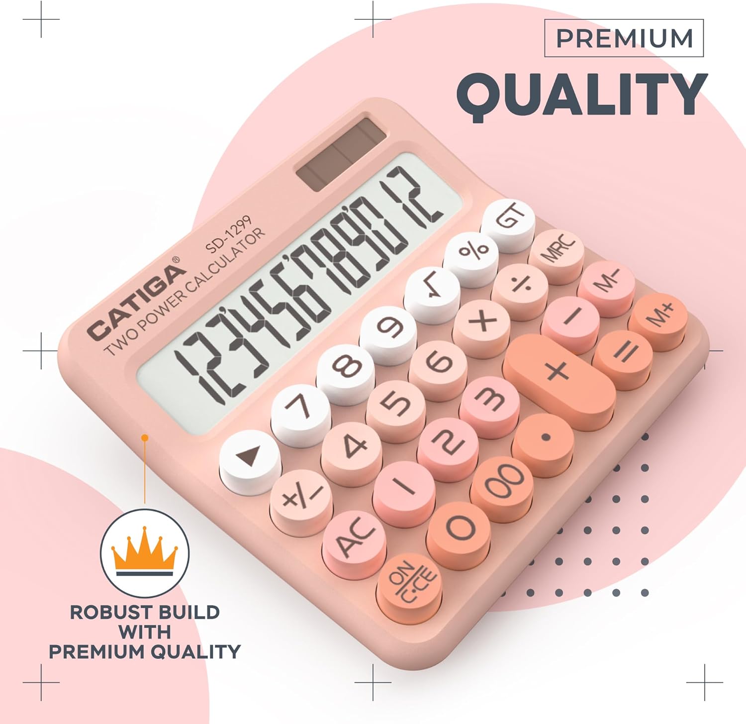 CATIGA Mechanical Switch Calculator with Solar and Battery Dual Power, 12-Digit Large LCD Display, Aesthetic and Cute Desktop Calculator with Big Button, for Home, School and Office Use, SD-1299