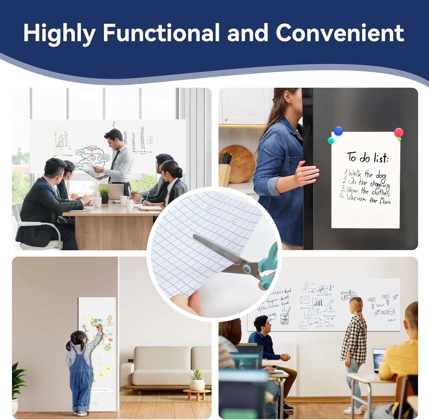- 【What You'll Get】- 1 whiteboard wall sticker measuring 78.7 inches x 17.7 inches, 3 dry-erase markers, 1 cleaning cloth. Transform almost any smooth, flat surface into a whiteboard with this adhesive sticker!