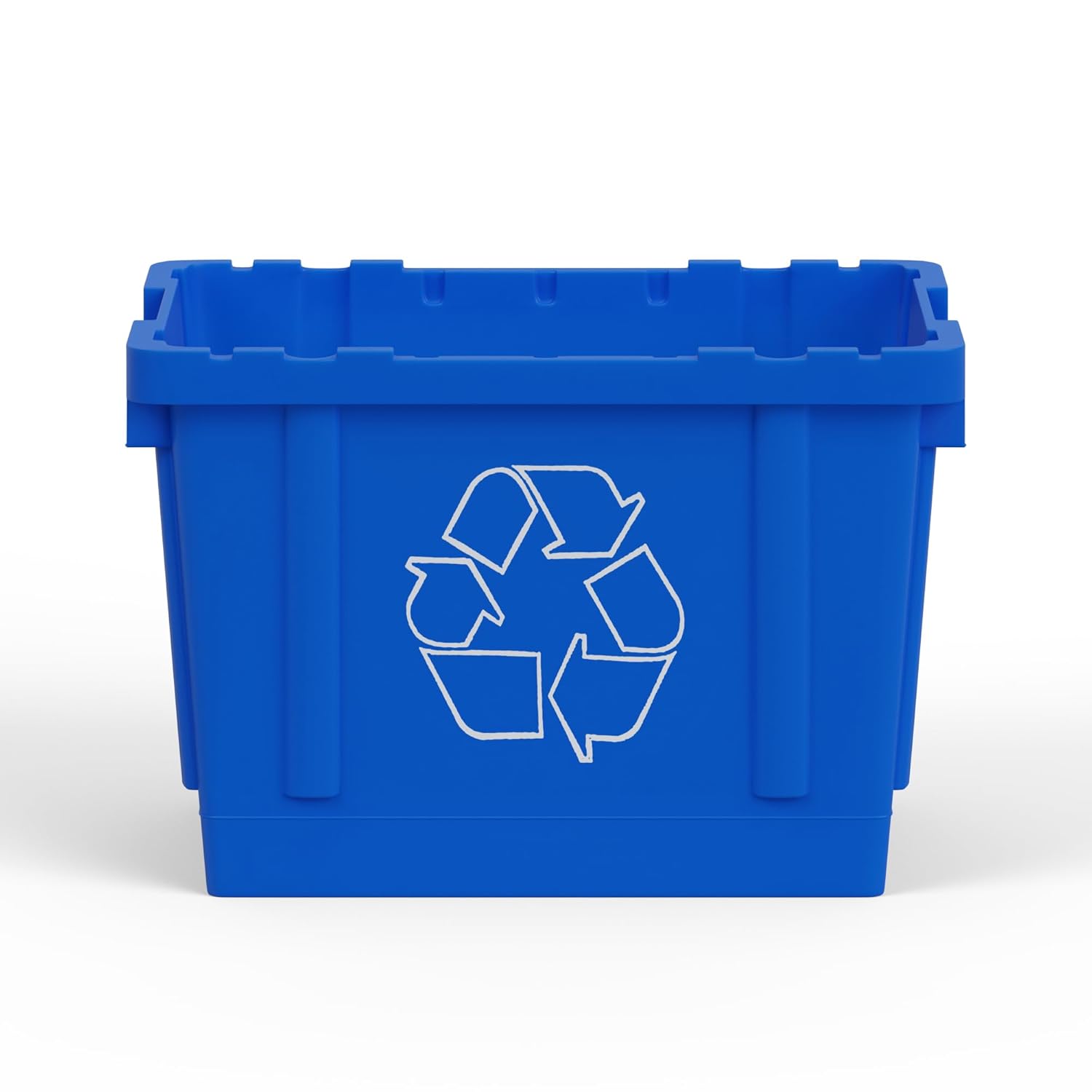 14 Gallon Rectangular Blue Recycling Bin | 4 Pack | Inside Outside Curbside | Stackable Box for Paper Plastic