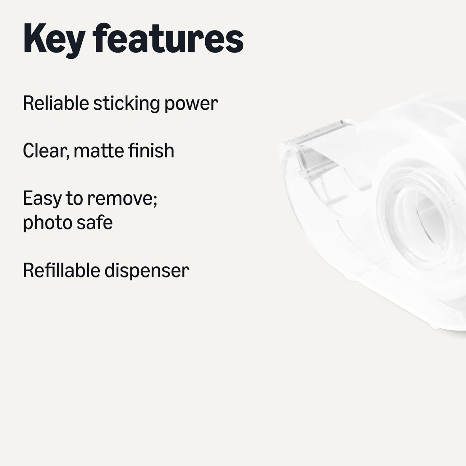 - 3-pack of invisible tape rolls with dispenser for everyday use at home, school, or the office