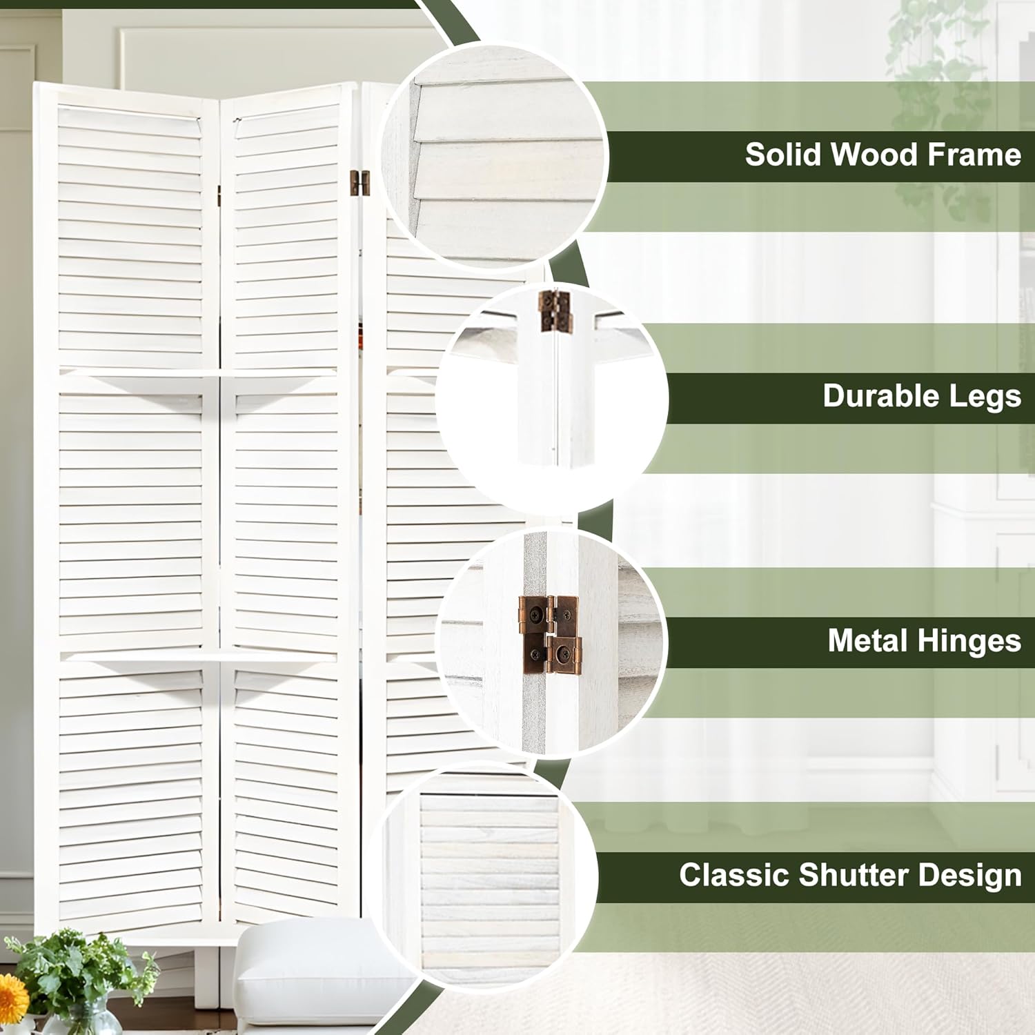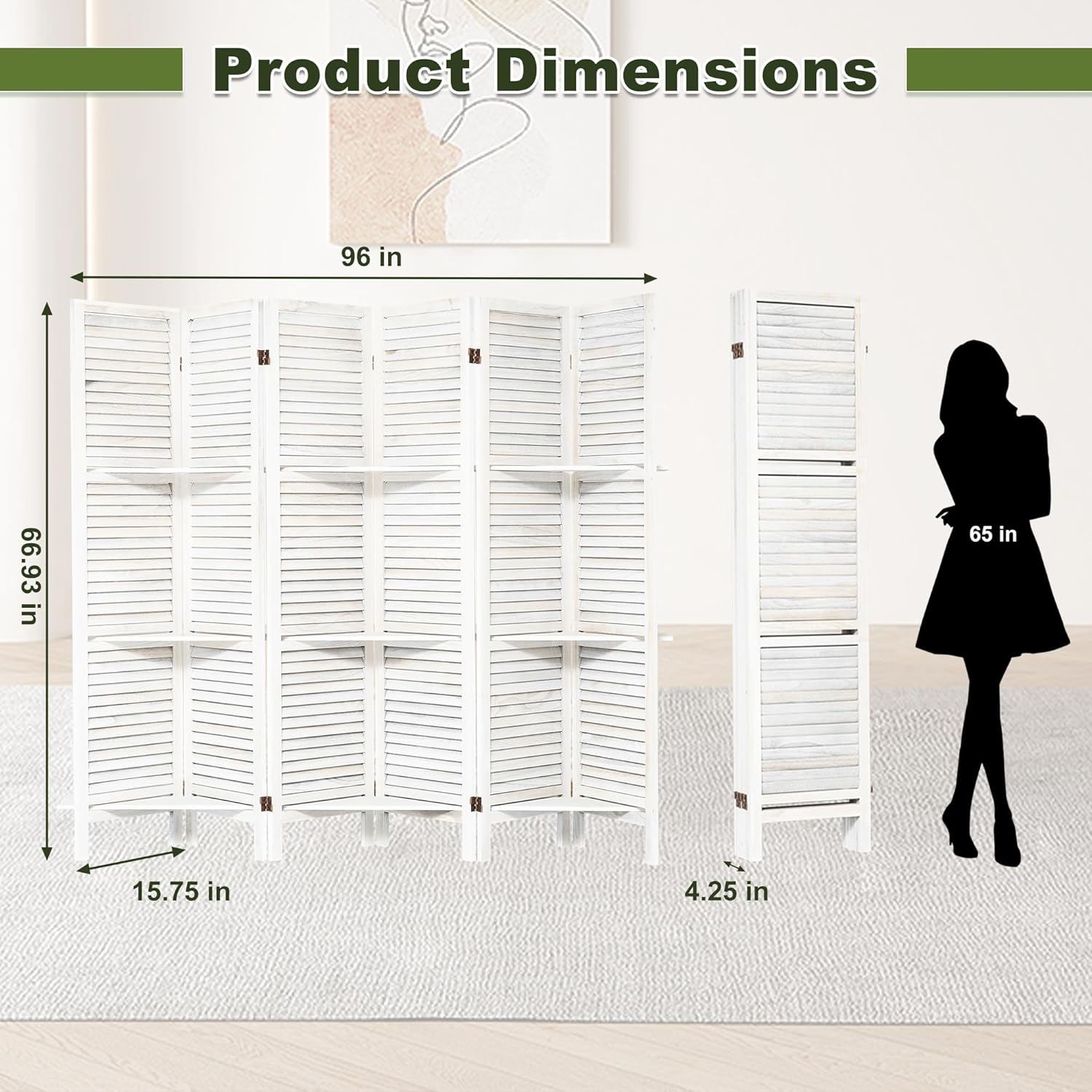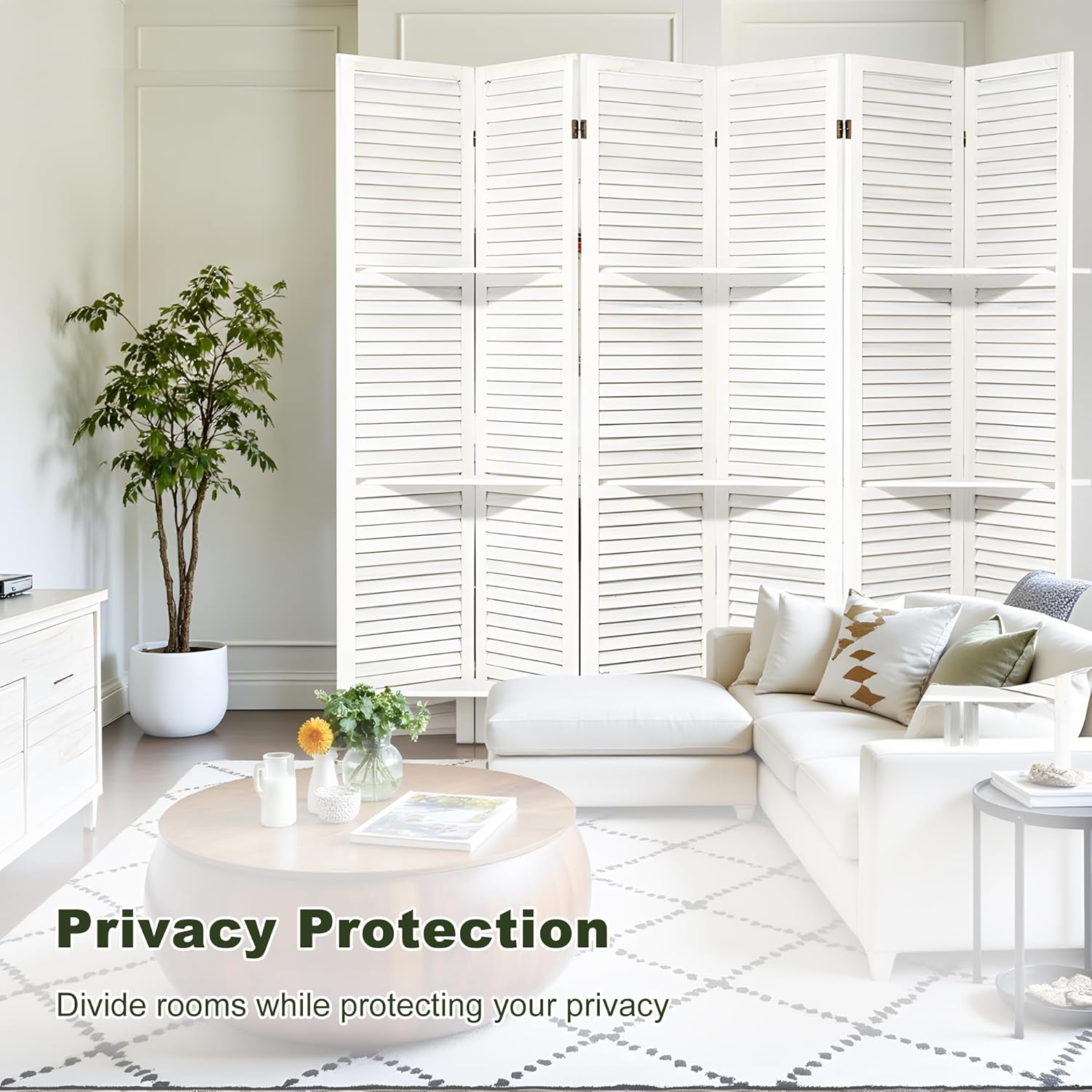 NicBex 6 Panel Room Divider 5.6FT Louvered Design Room Dividers with Display Storage Shelves Folding Privacy Screens Portable Freestanding Partition Wall Dividers for Home Bedroom Office, White