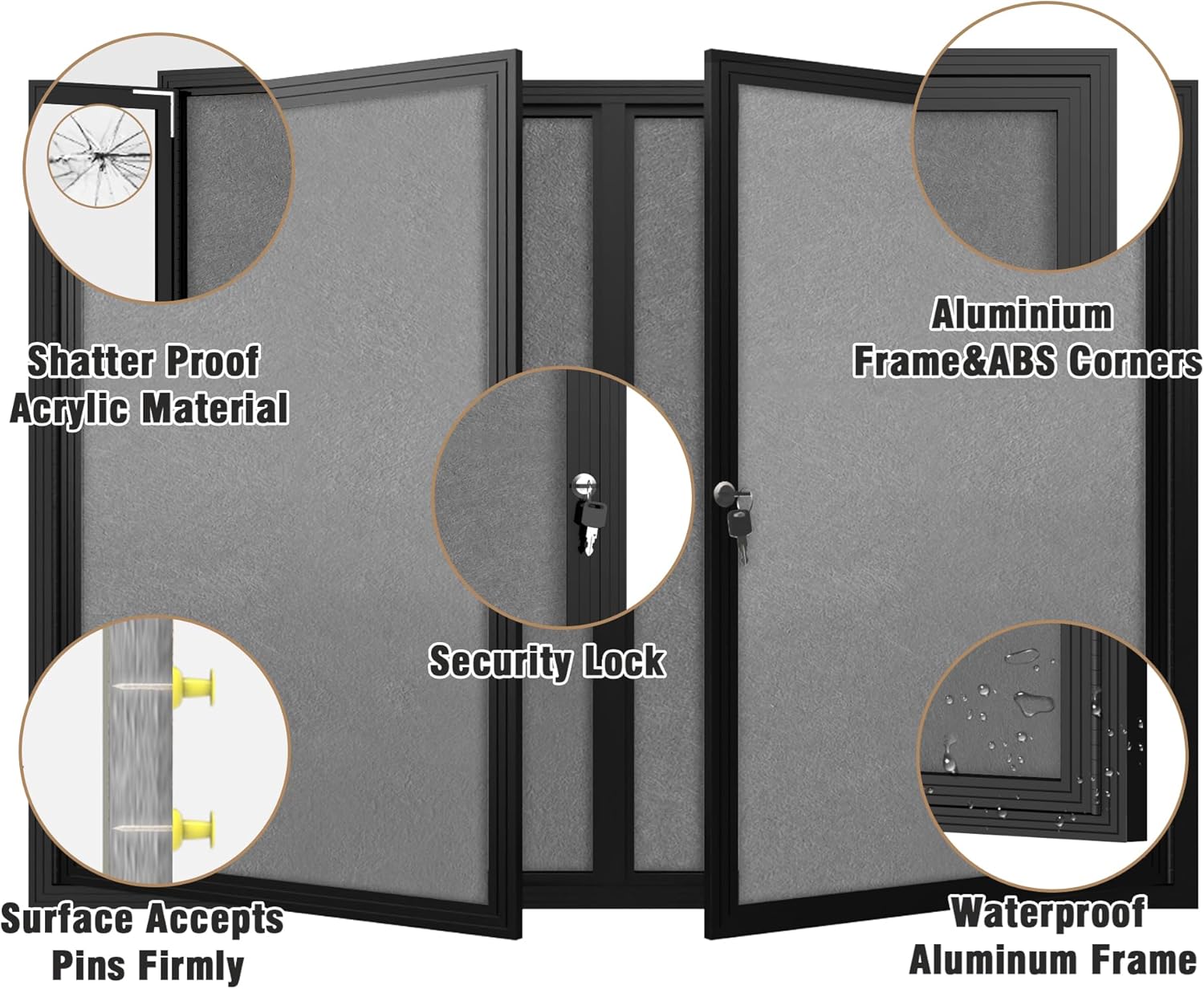 - 🌟✔【Secure Enclosed Bulletin Board】: This lockable bulletin board ensures the safety of your announcements and guarantees that posted items can only be removed by authorized individuals. Suitable for push pins, thumb tacks, or map pins, it's perfect for displaying notes, messages, pictures, memos, calendars, menus, reminders, and more. Ideal for home, office, or business environments.