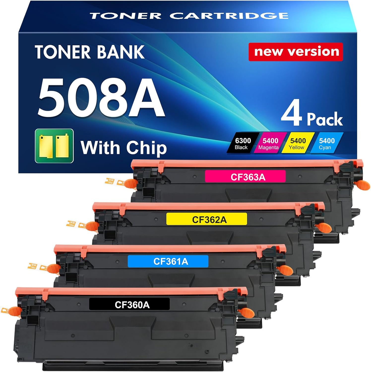 - Package Contents: 1 x CF360A Black Toner, 1 x CF361A Cyan Toner, 1 x CF362A Yellow Toner, 1 x CF363A Magenta Toner for HP 508A M553 Toner Cartridges