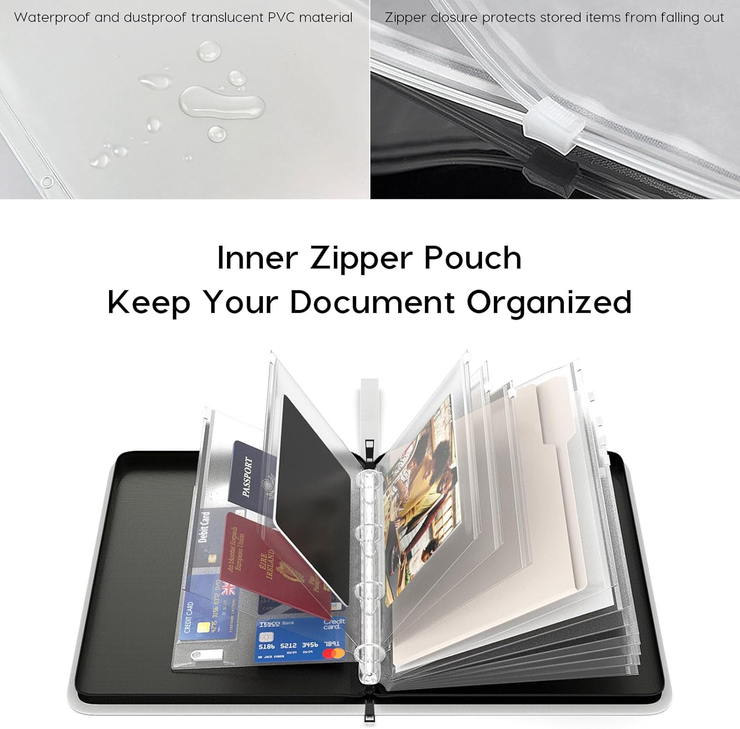 - Waterproof Document Organizer: This folder adopts a unique zipper binder + waterproof pockets design, which can effectively protect your important documents in emergencies such as flood and wet weather