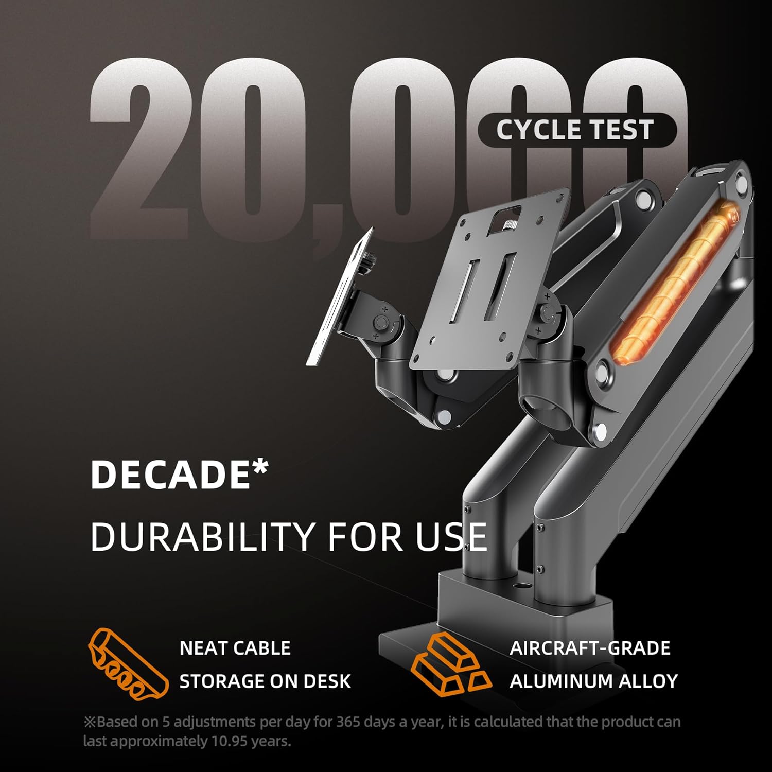 - Package & Support: Includes 1 x Claiks Single Monitor Gas Spring Mount, a mounting hardware kit, and a user manual. We also provide experienced and friendly customer support to assist you 7 days a week with any questions or issues.