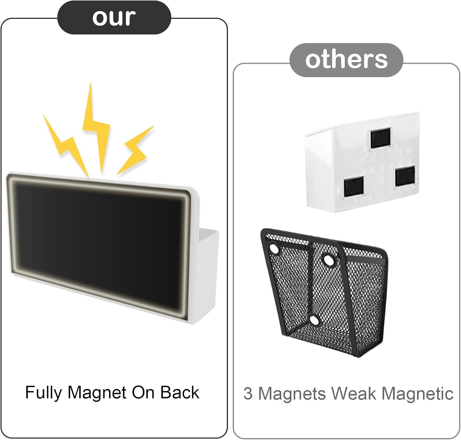 - Upgraded Magnetic Pen Holder:Magnetic marker holder adopts divider design,there are 2 divider.Magnetic dry erase marker holder's dimensions is 8.27L x 2.05W x 4.33H inches(Long Style),you can choose your storage Organizer of different sizes as you like.
