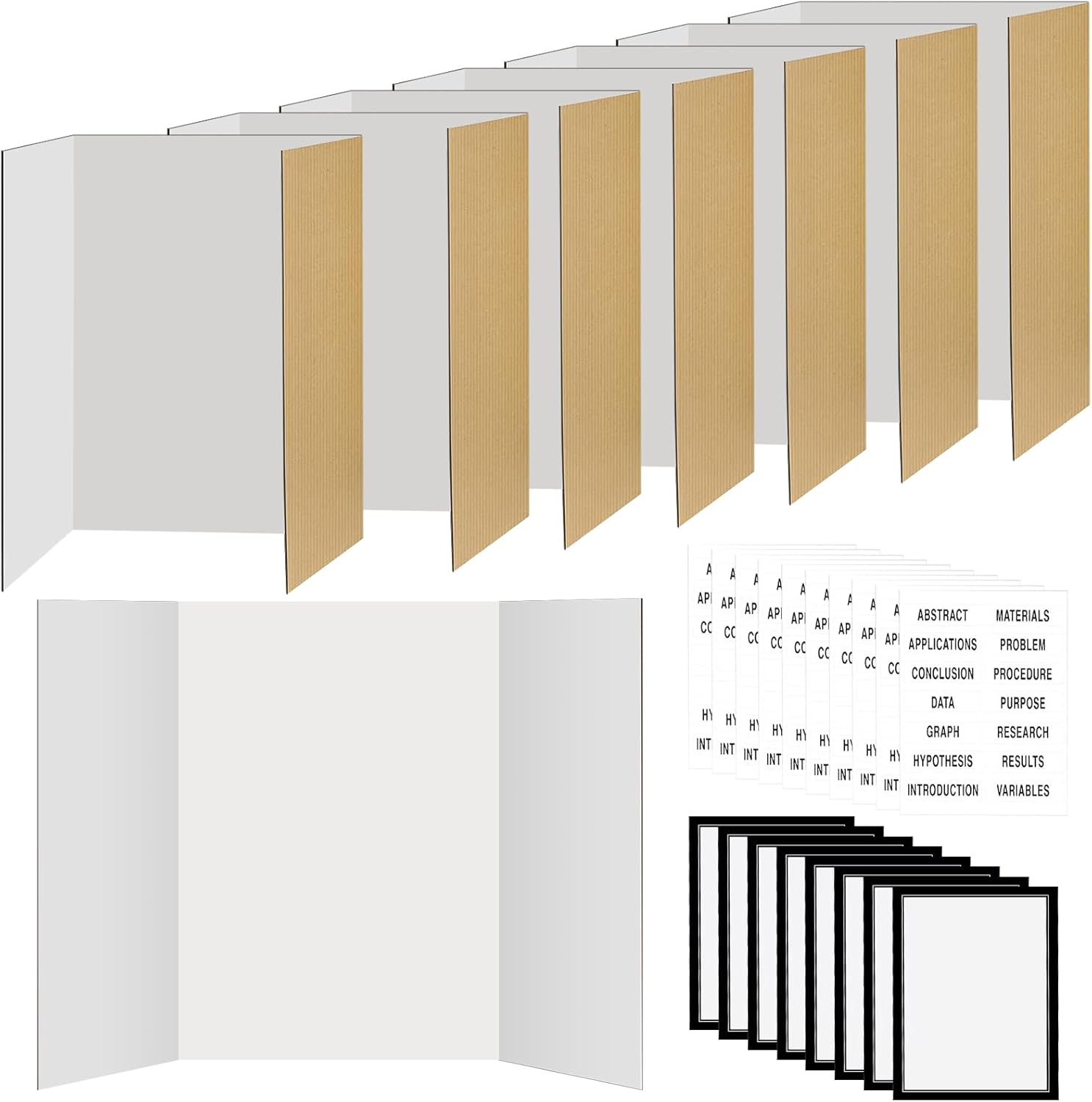 - The Package Includes: You will receive a set of 8 trifold poster boards, each with a matching card head, and also includes 8 self-adhesive poster board titles and 64 black-edged science project stickers, practical designed to enhance the clarity and visual appeal of the display