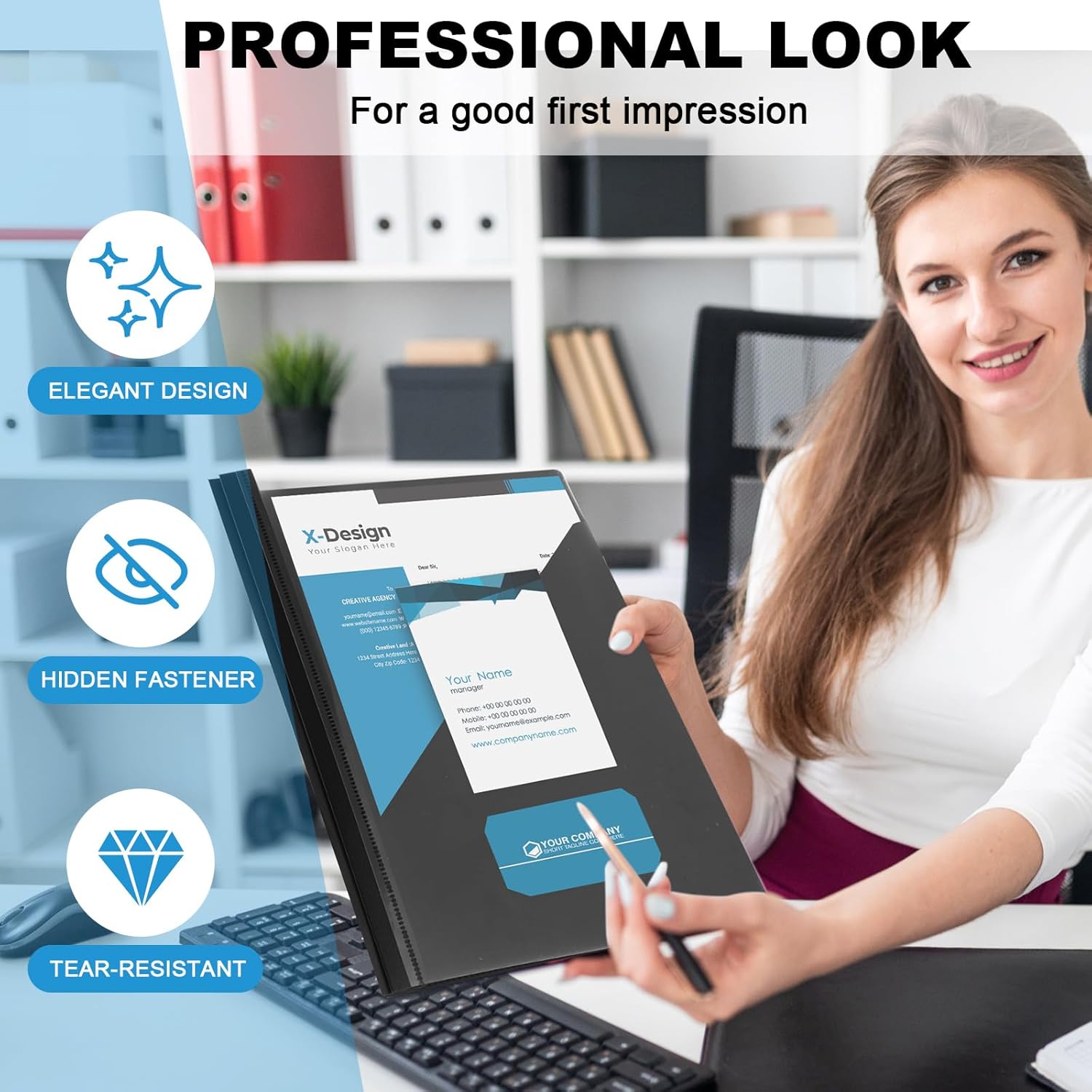 - Innovative Design: includes 48 business report covers, comes with 3 sturdy pins, and has 3 pockets to store documents securely; This design can easily and securely hold your documents, these pins ensure that your papers will not fall, bringing you an easy and simple use experience