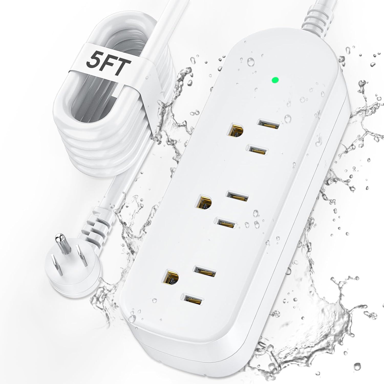 Surge Protector Power Strip,1625W/13A,5Ft Extension Cord with 3 Outlets,Waterproof Class 6 Heavy Duty Extension Cord for Indoor Outdoor,UL FCC IPX6 Listed (White, 5FT)
